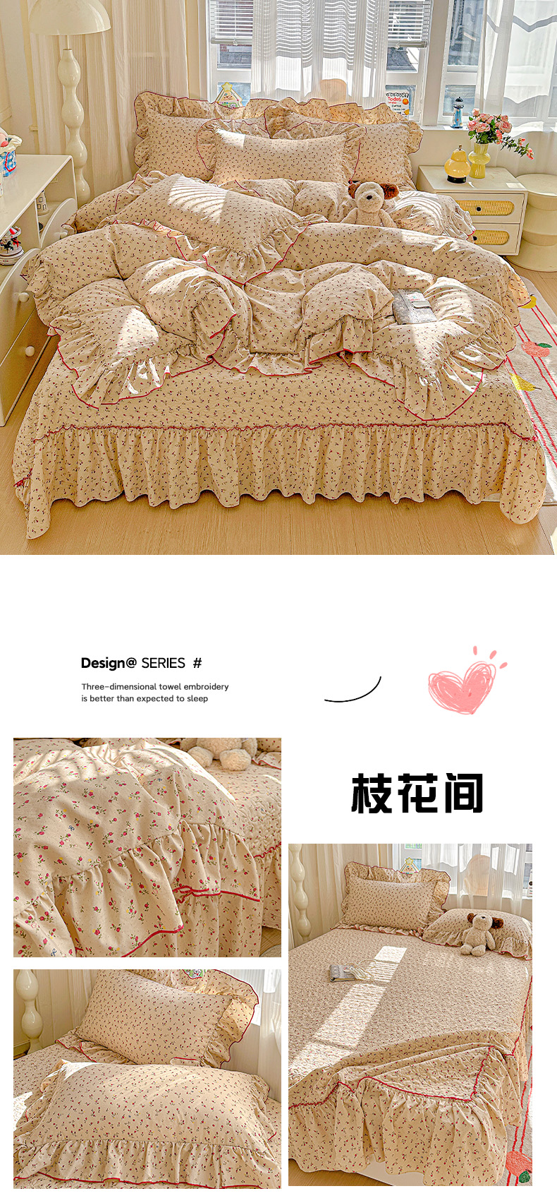 (总)家维家纺 2026新款(常年不断货)韩式花边复古棉感床盖四件套 提供买家秀,花柔犬,波点,小困豹猫,春日礼盒,花枝棠,花园,枝花间