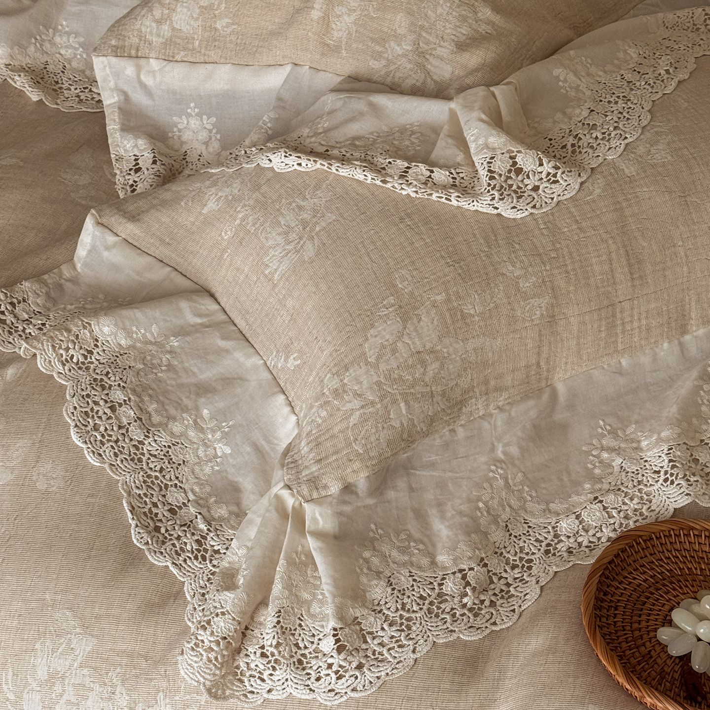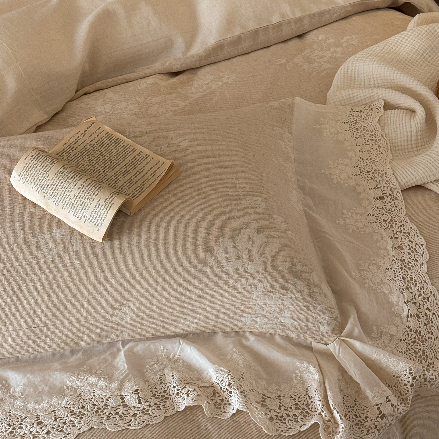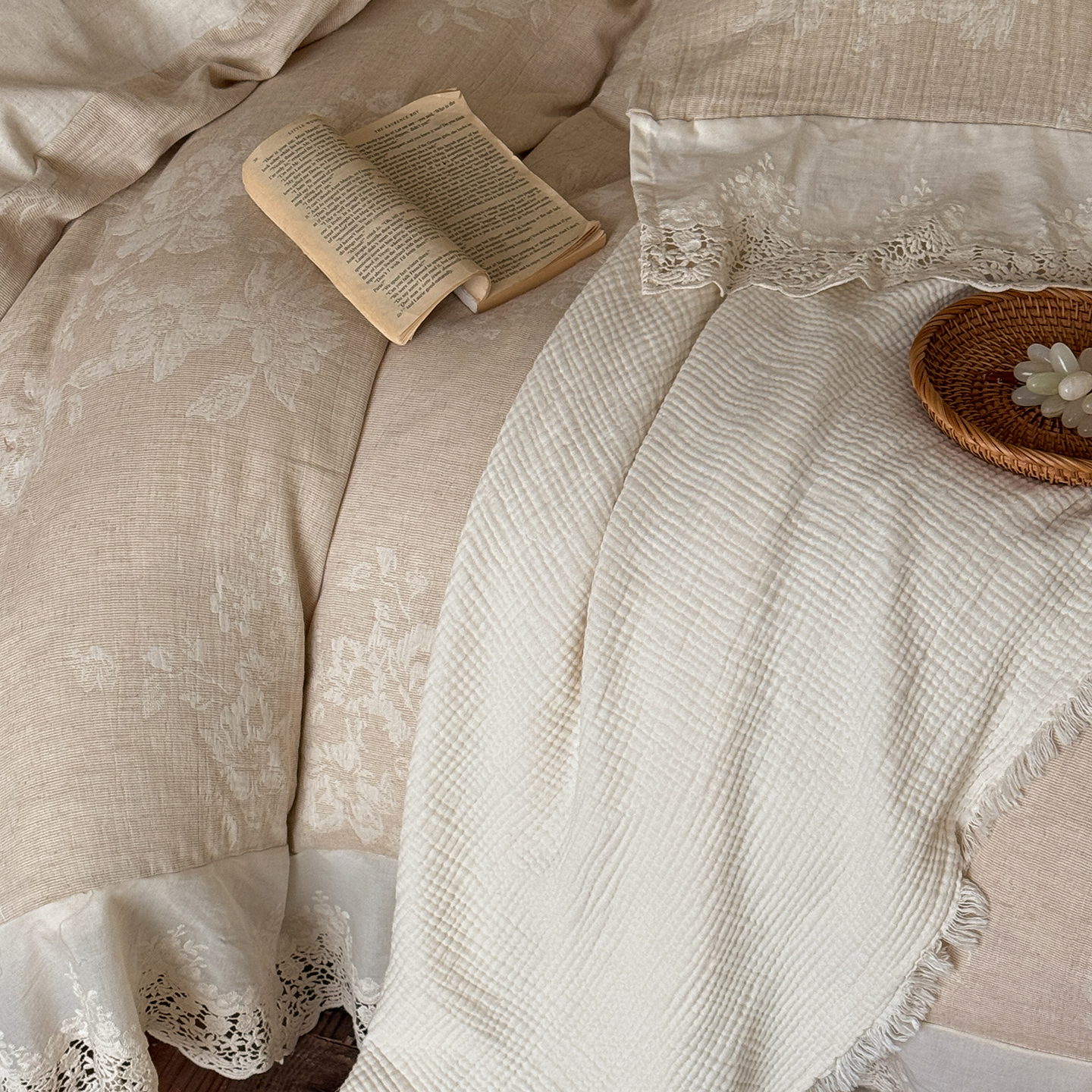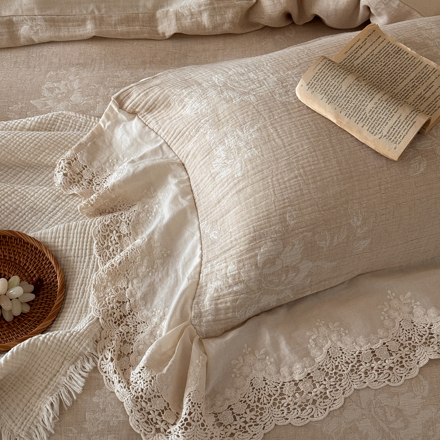 (总)爱丽丝 2026新品色织提花棉麻四件套-木兮花边款,木兮花边款