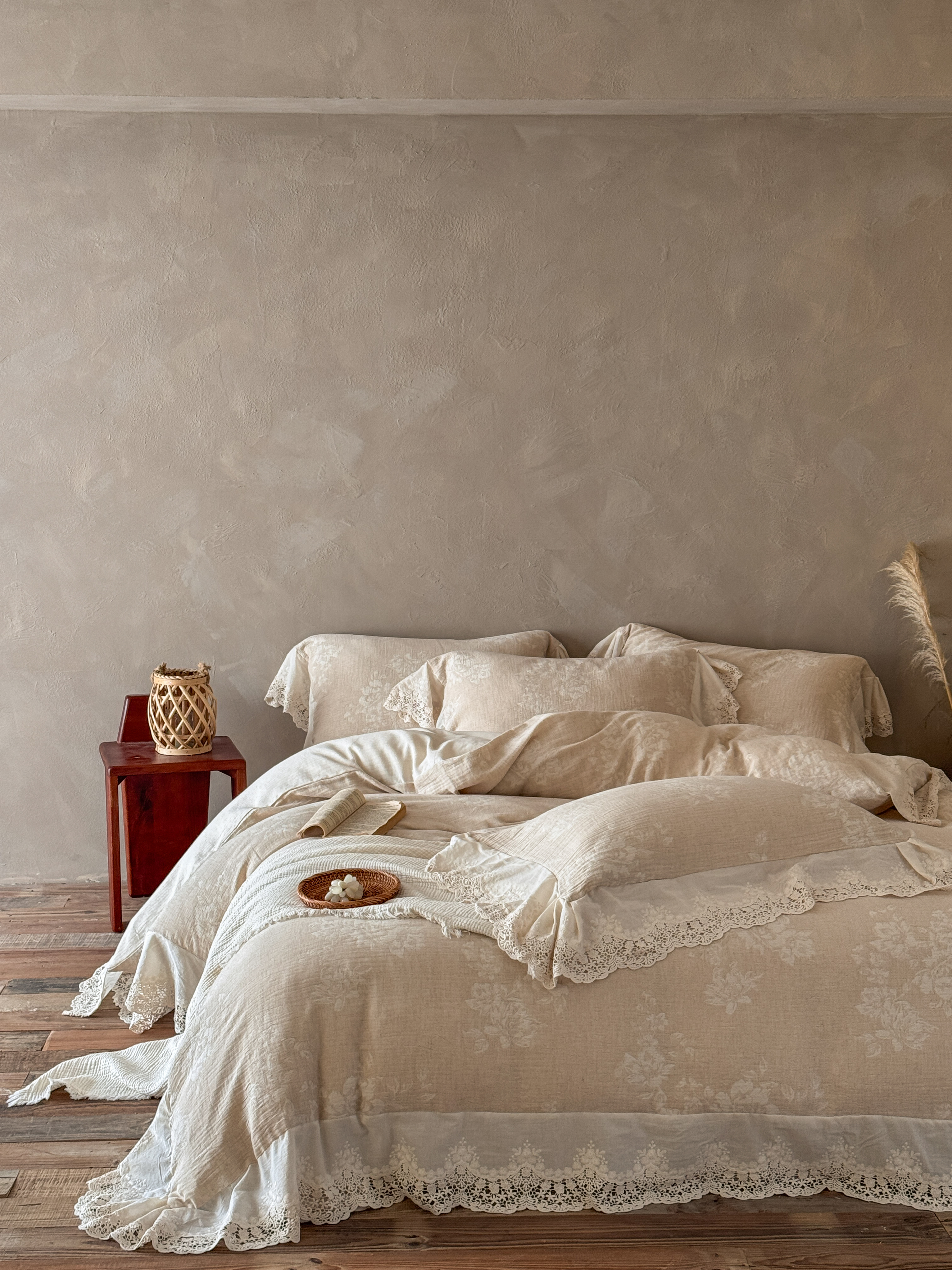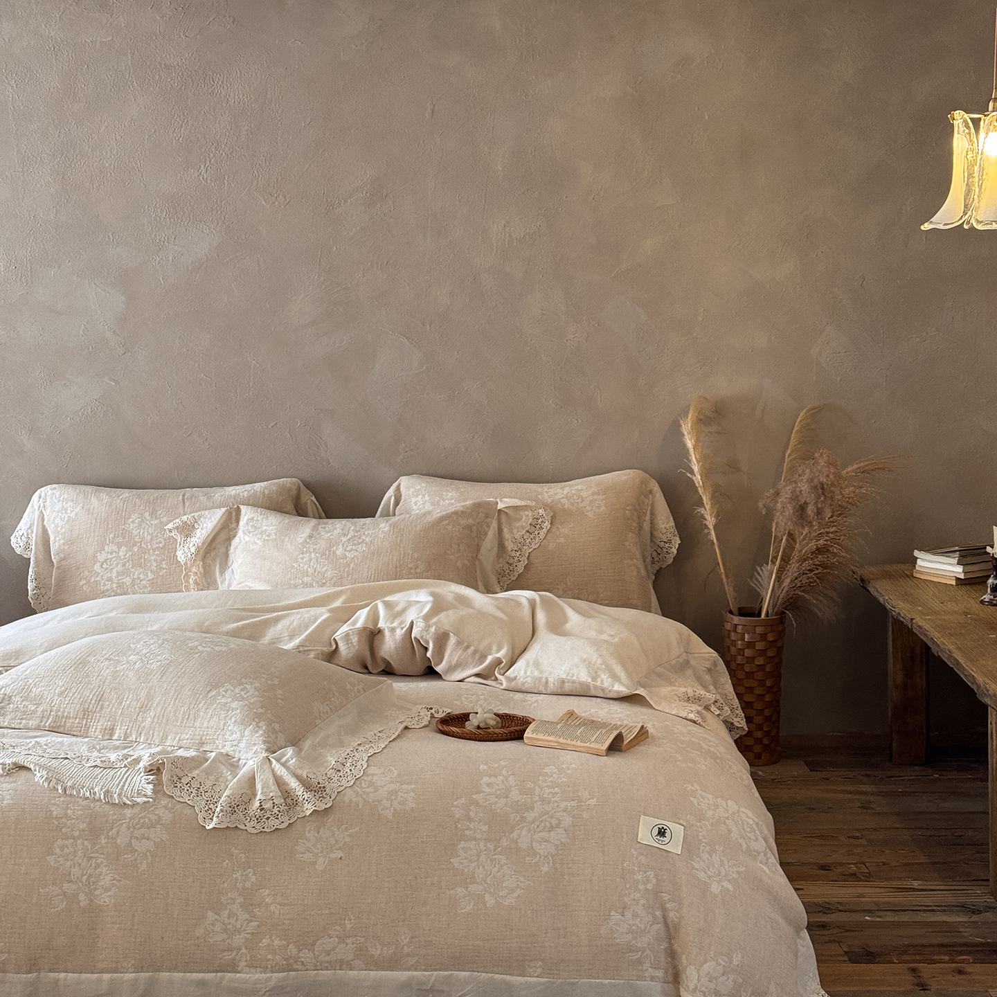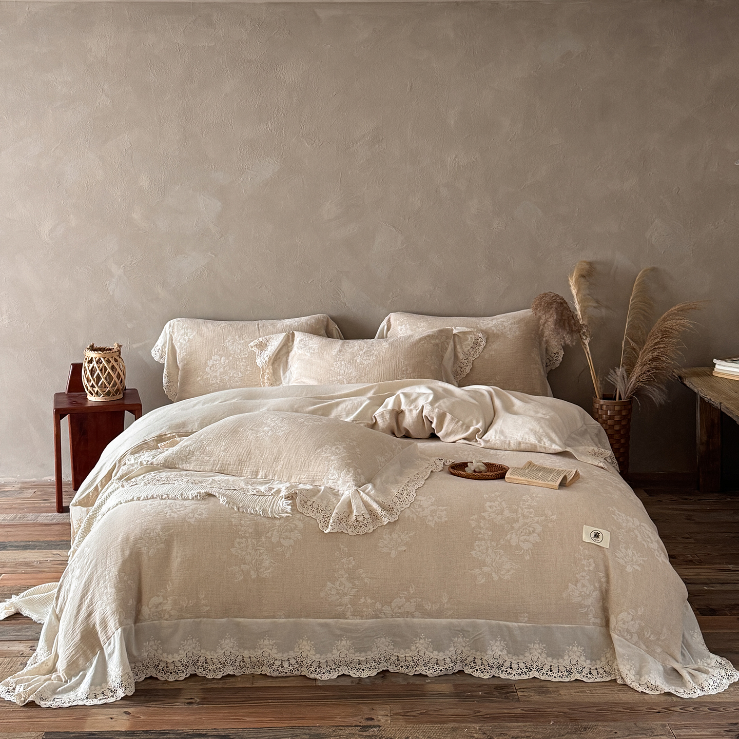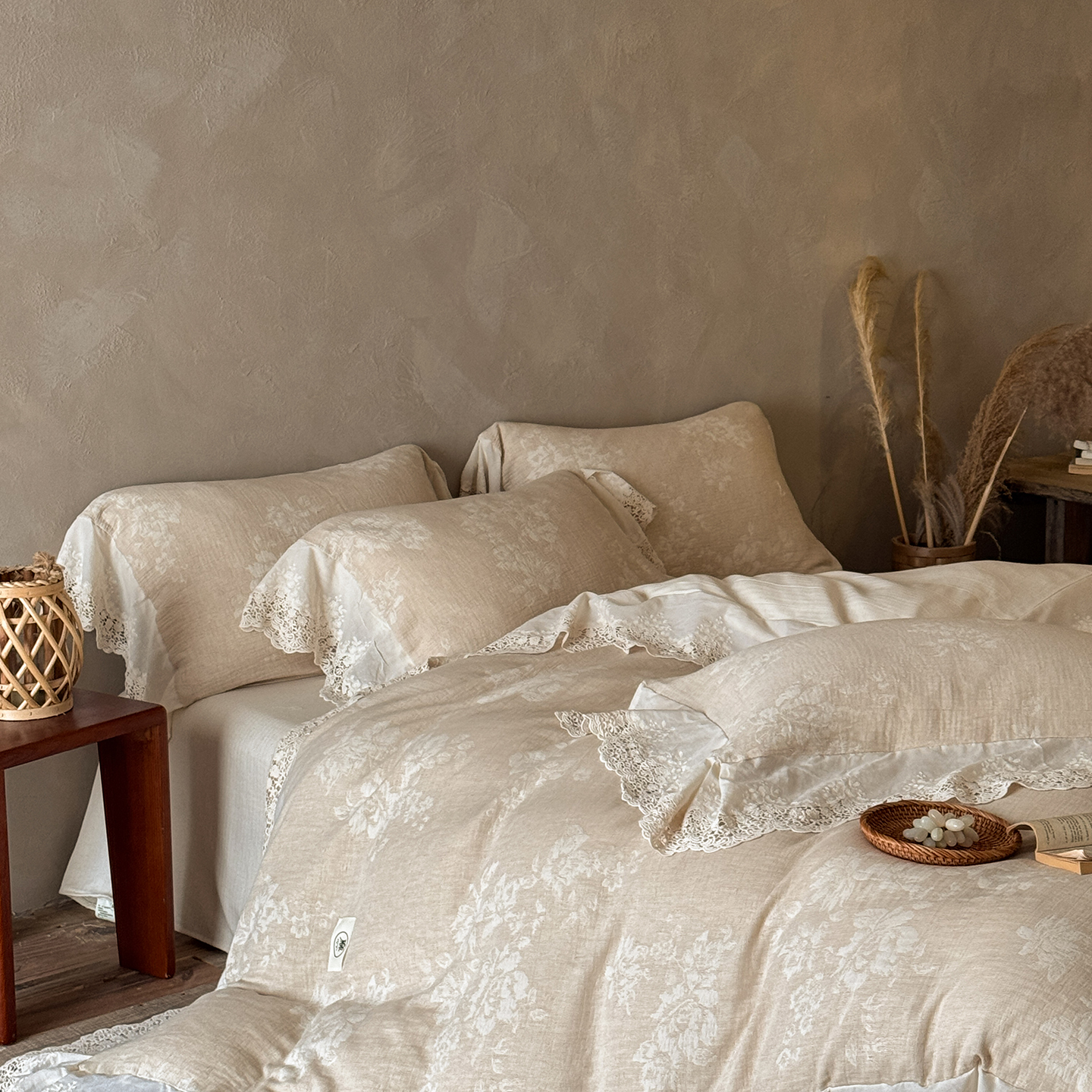 (总)爱丽丝 2026新品色织提花棉麻四件套-木兮花边款,木兮花边款
