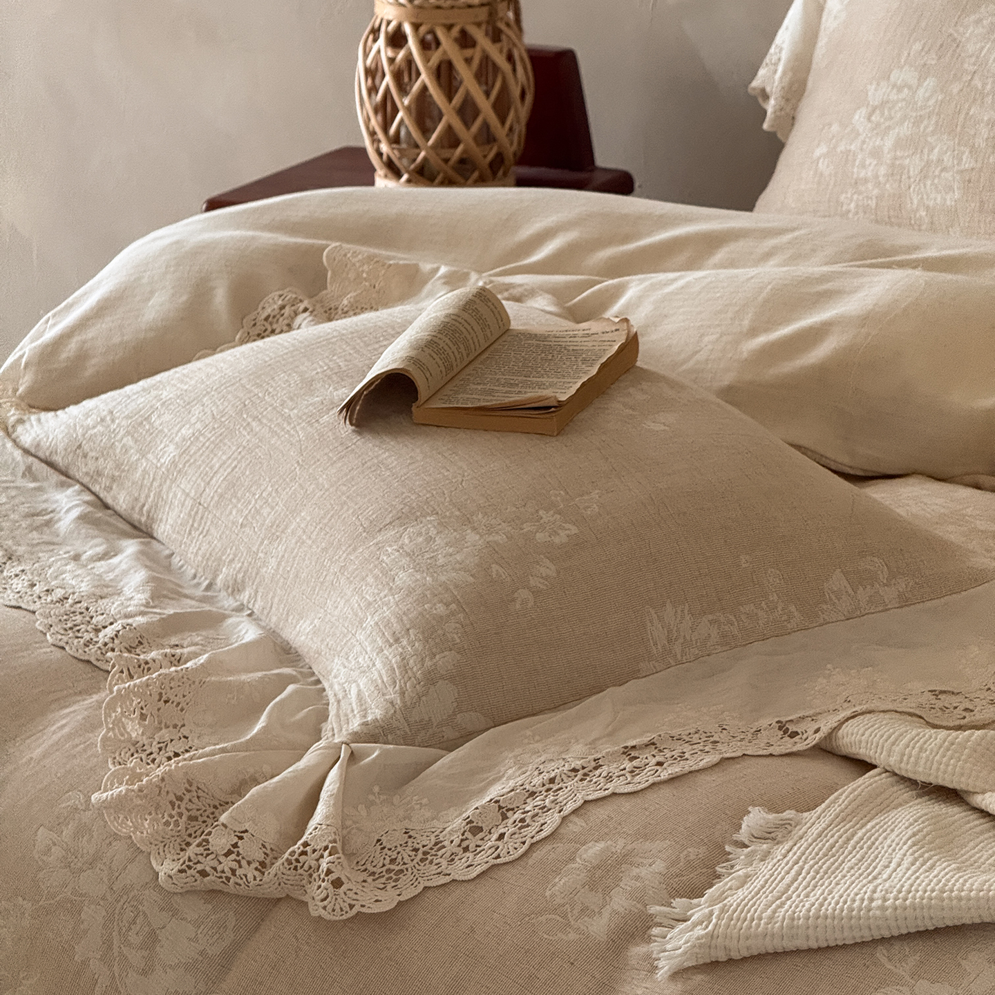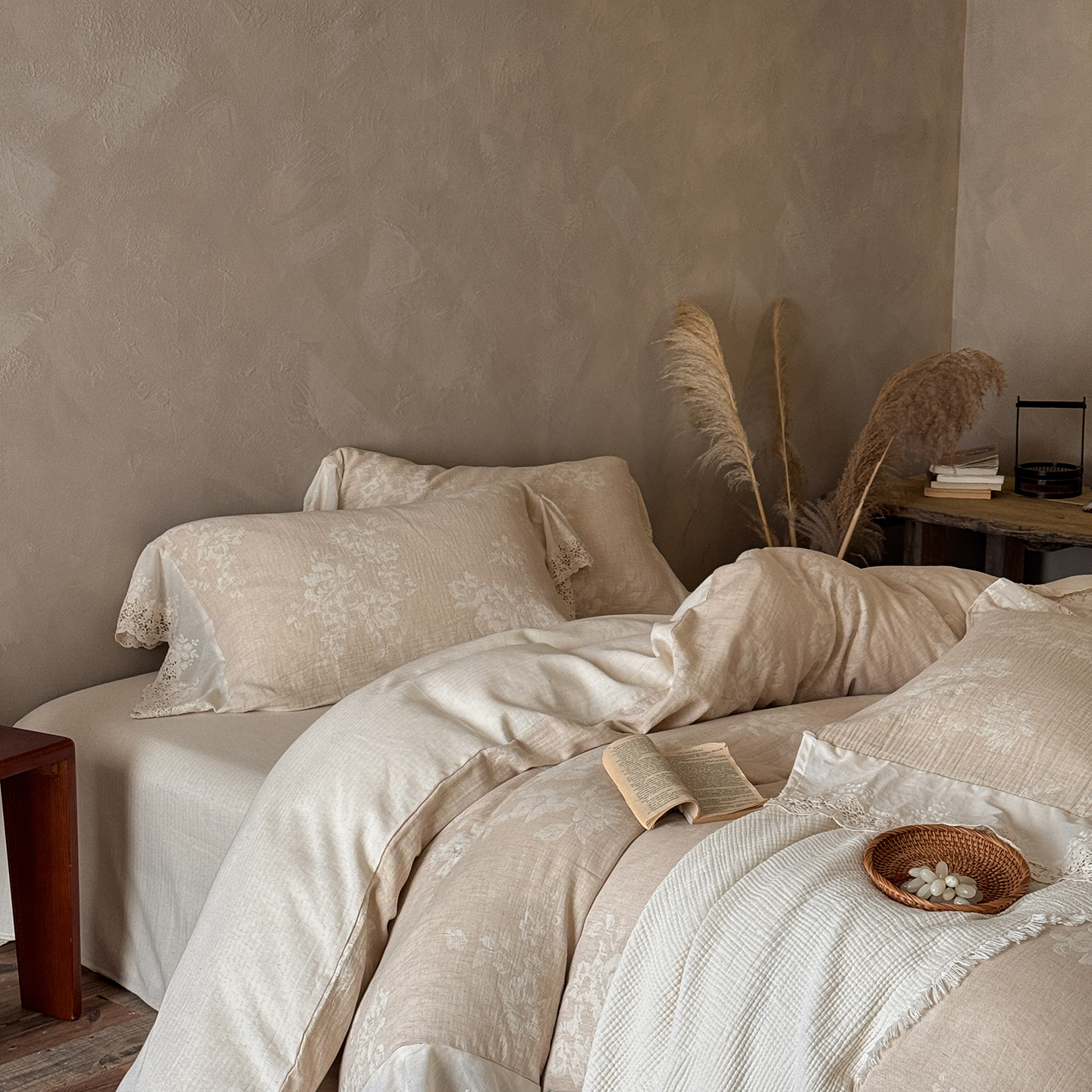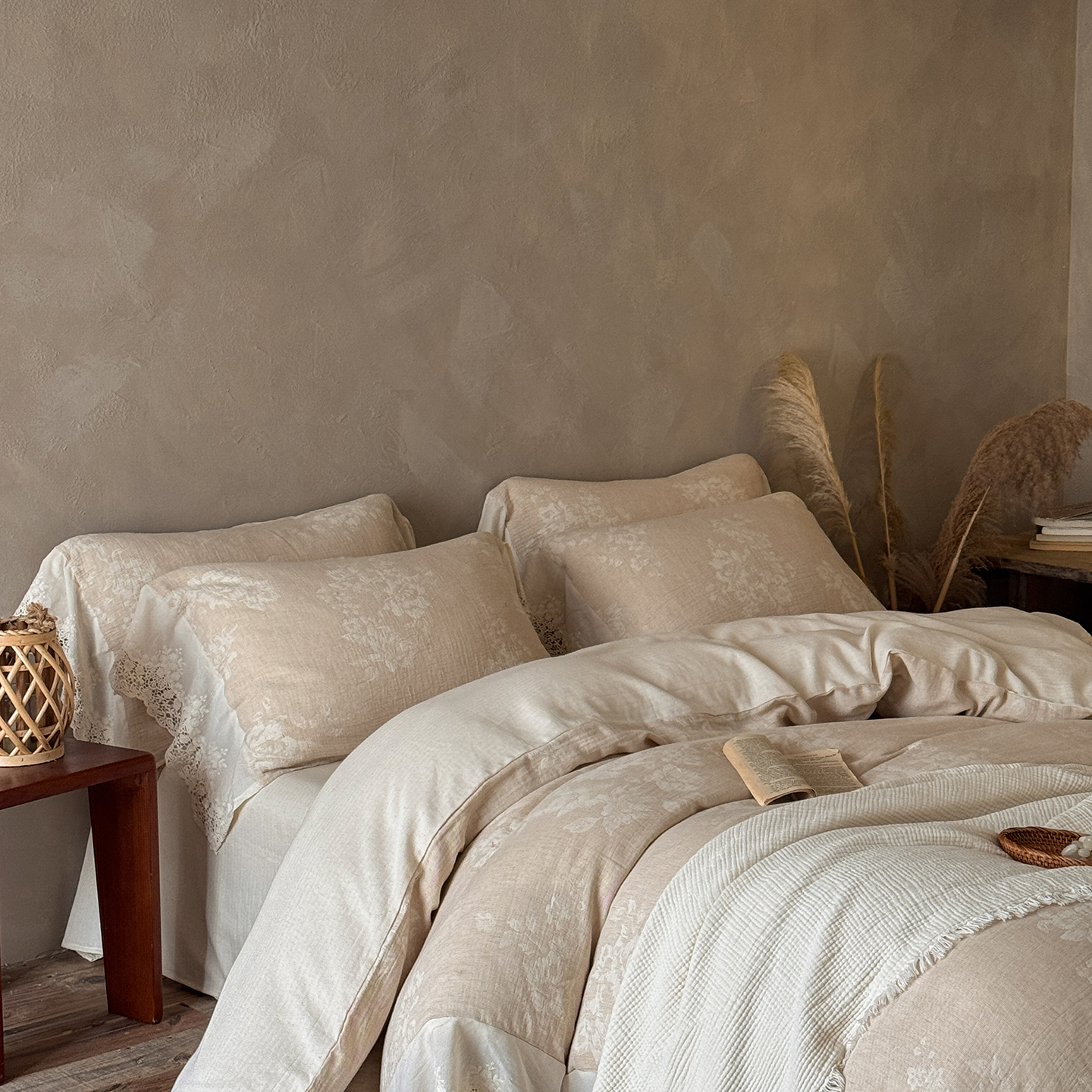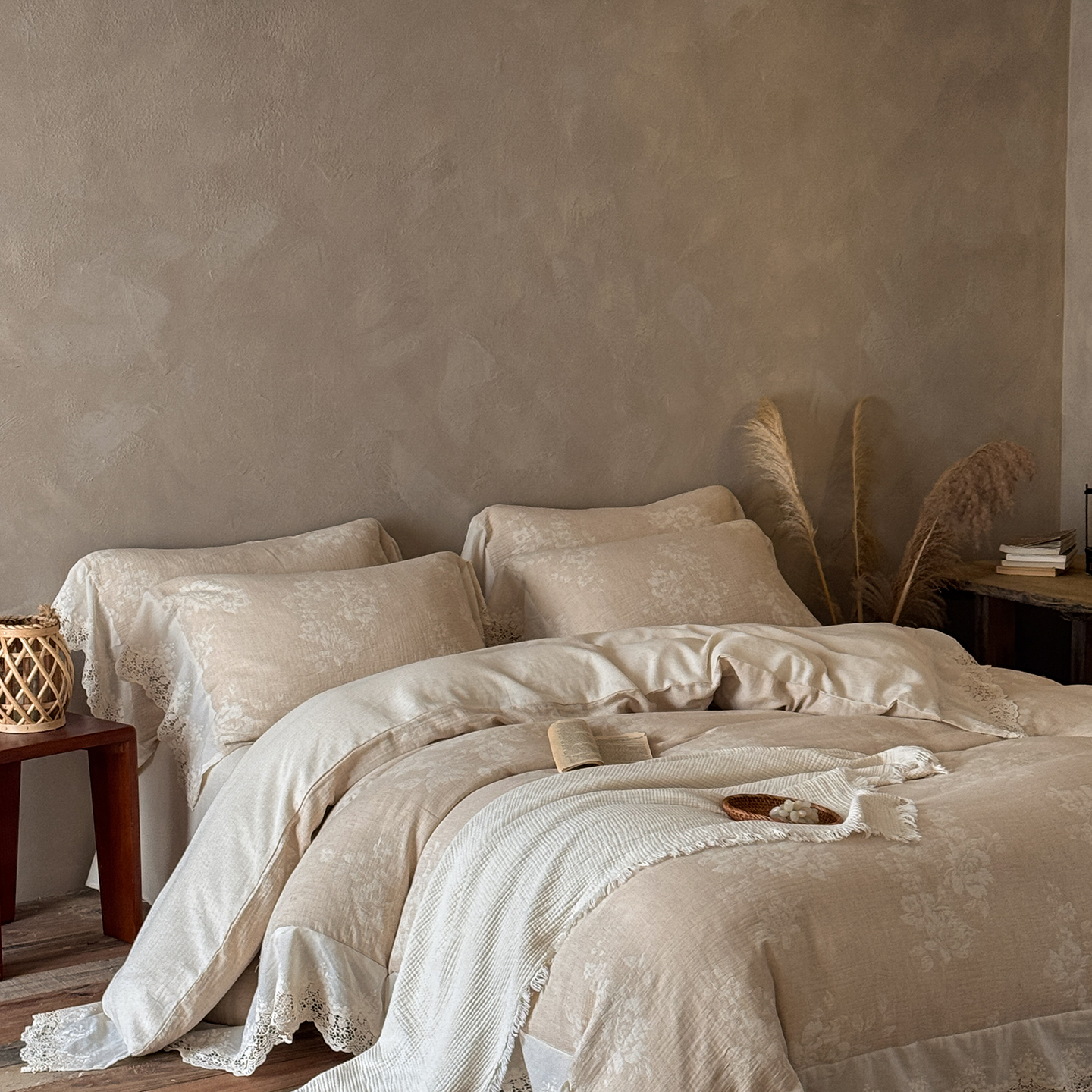 (总)爱丽丝 2026新品色织提花棉麻四件套-木兮花边款,木兮花边款