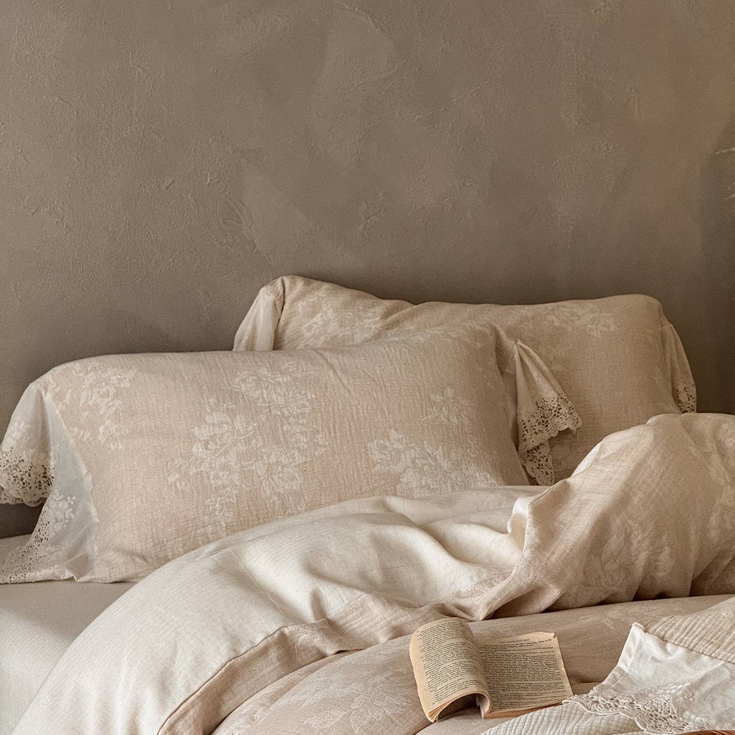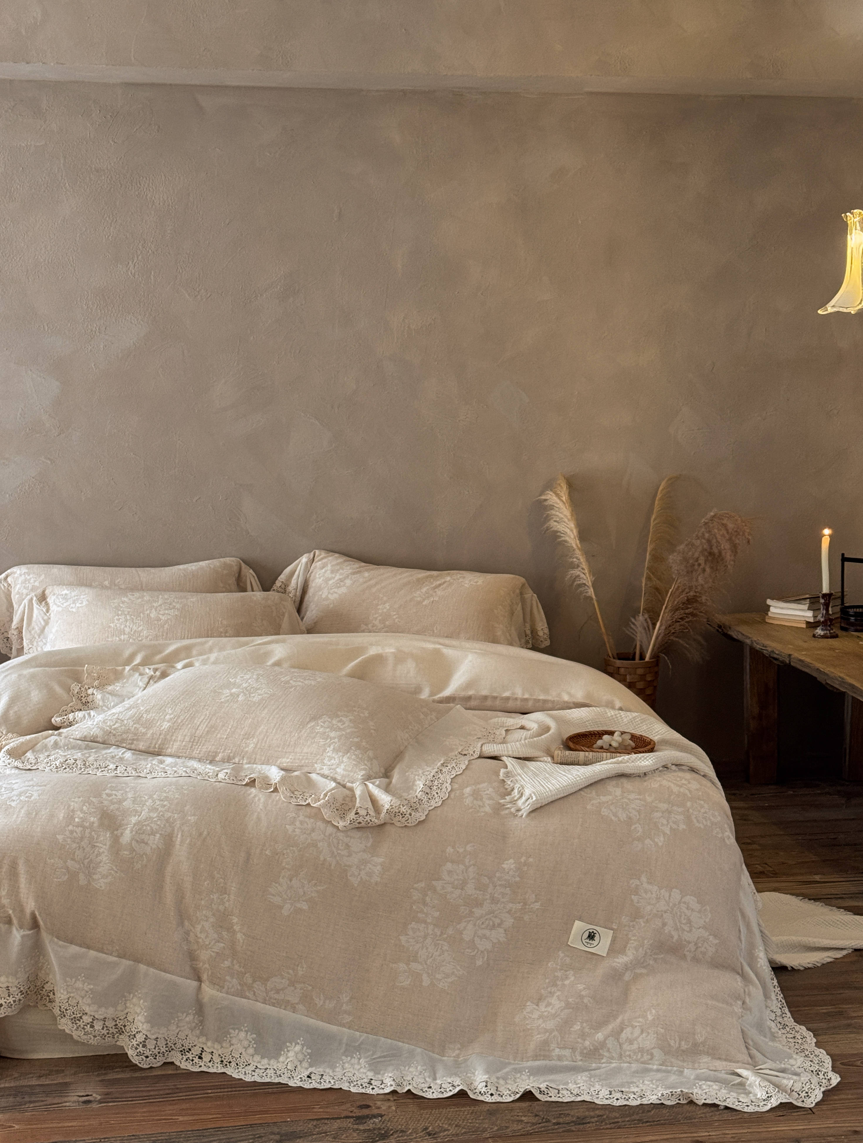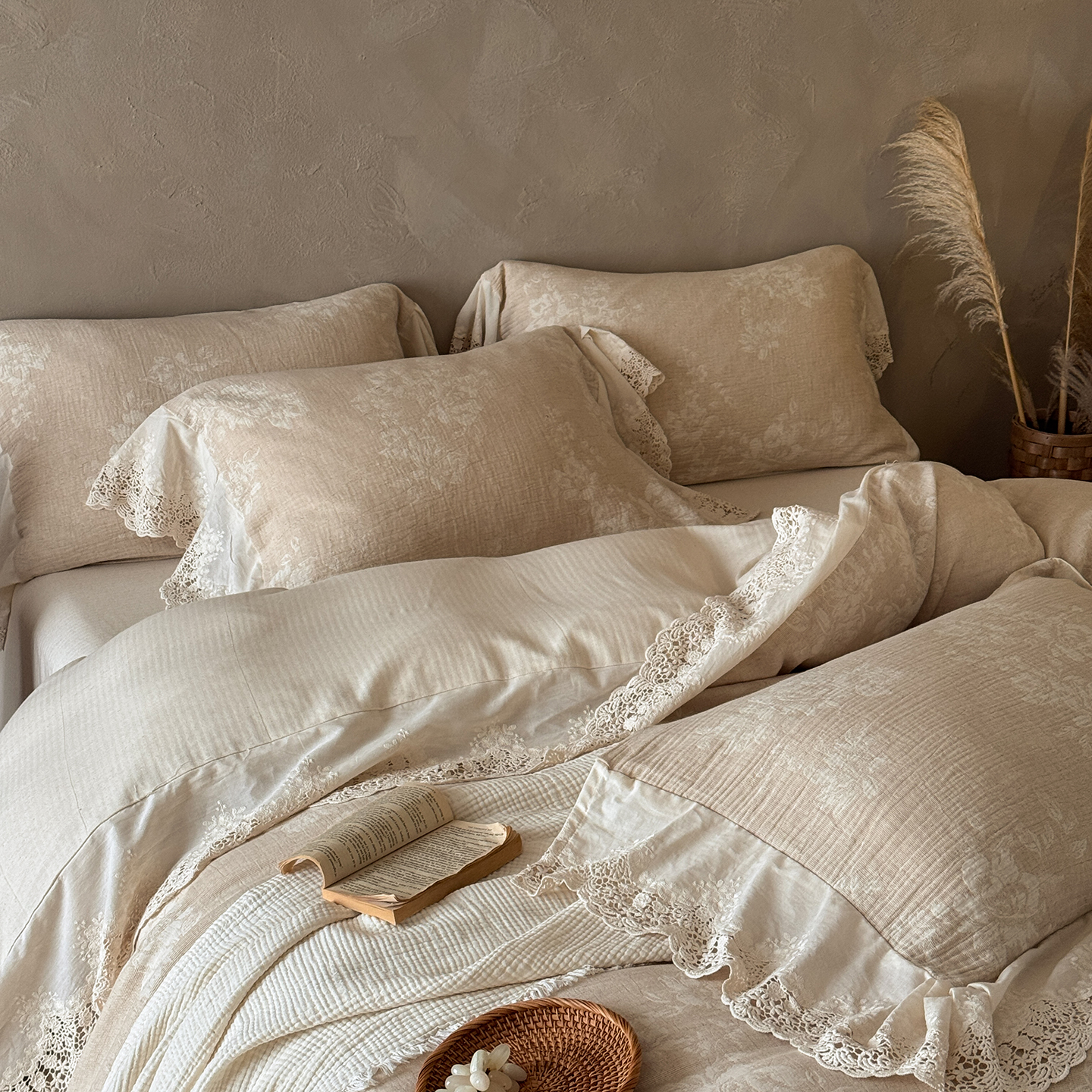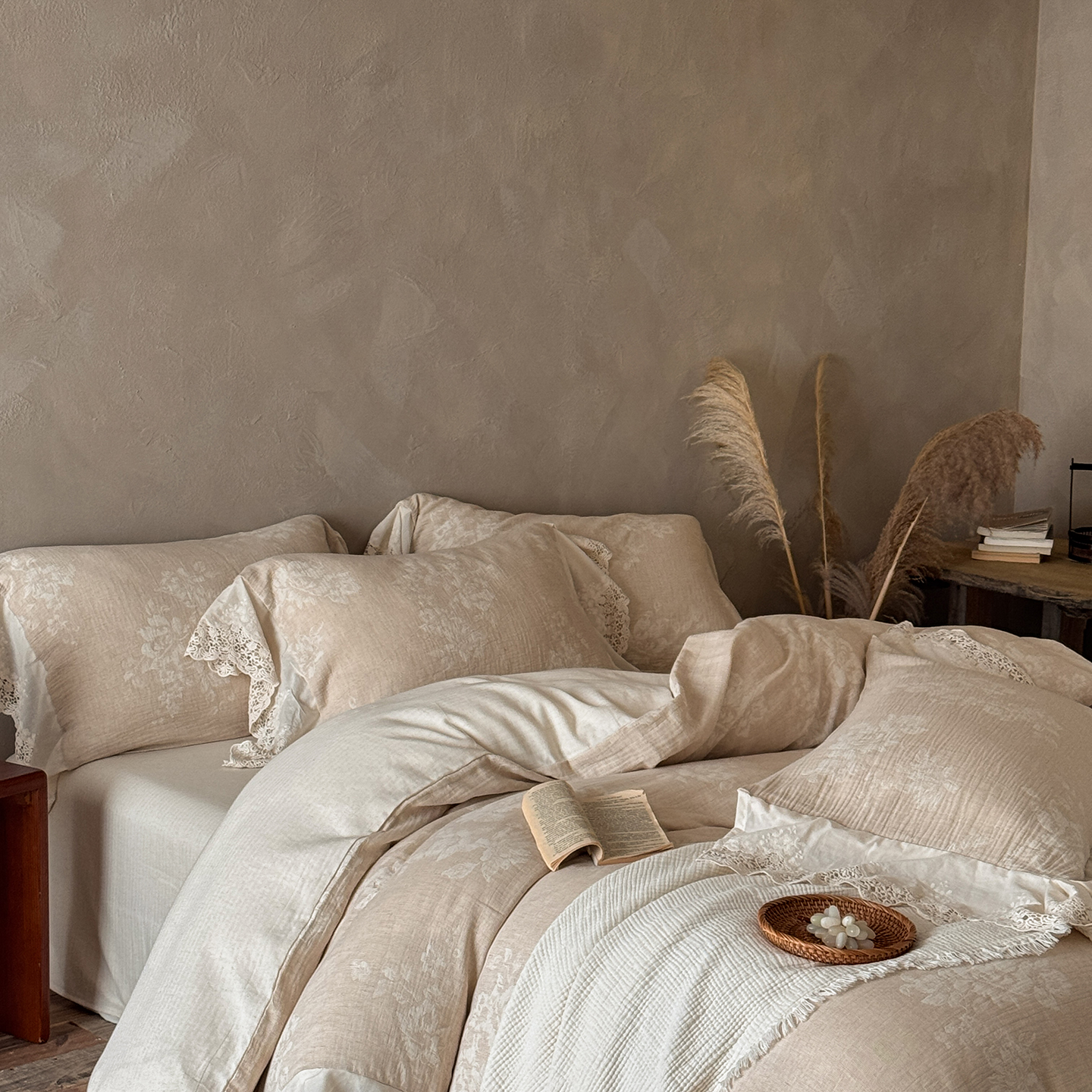 (总)爱丽丝 2026新品色织提花棉麻四件套-木兮花边款,木兮花边款