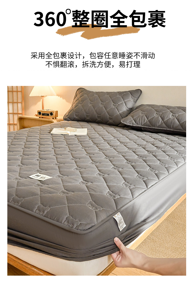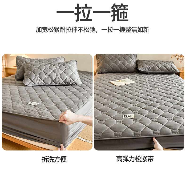 当前位置: 91家纺网 > 商品网购 > 床上用品 > 床笠 > 邵依家纺 2026新款A类加厚纯棉夹棉全棉床笠13372提供买家秀 小熊-石墨灰