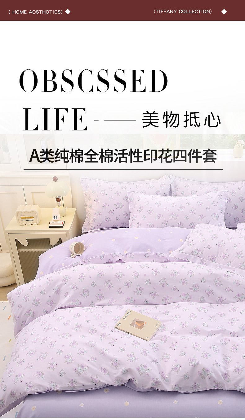 当前位置: 91家纺网 > 商品网购 > 床品套件 > 四件套 > 全棉普通四件套 > 织写 2026新款A类 四件套纯棉全棉12868 预留缩水尺寸 朴雅-紫