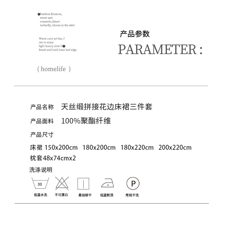 商品名称:乐朵家居 2026新款 25-3郁金香 天丝缎蕾丝床裙+可配空调 卡其