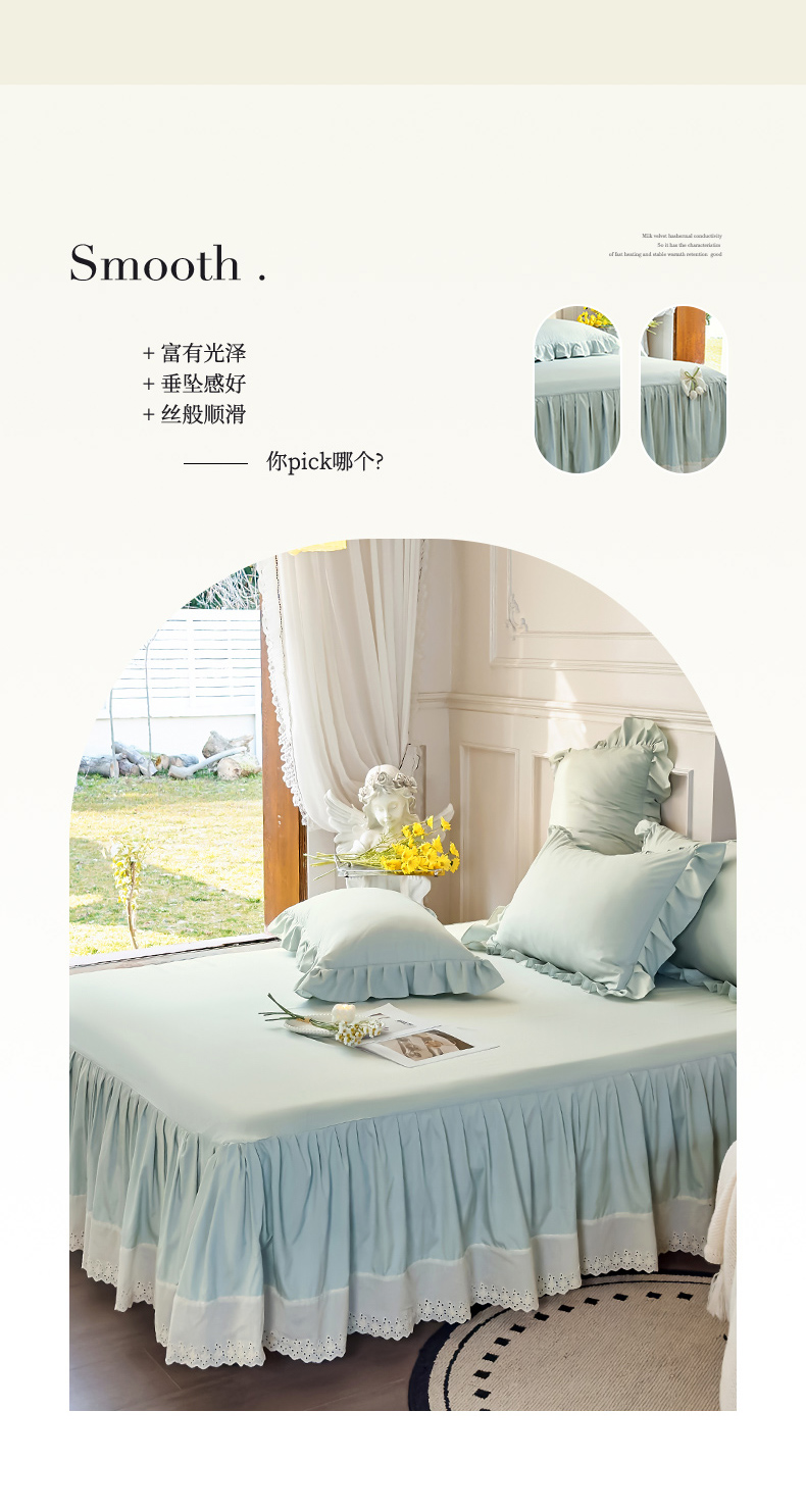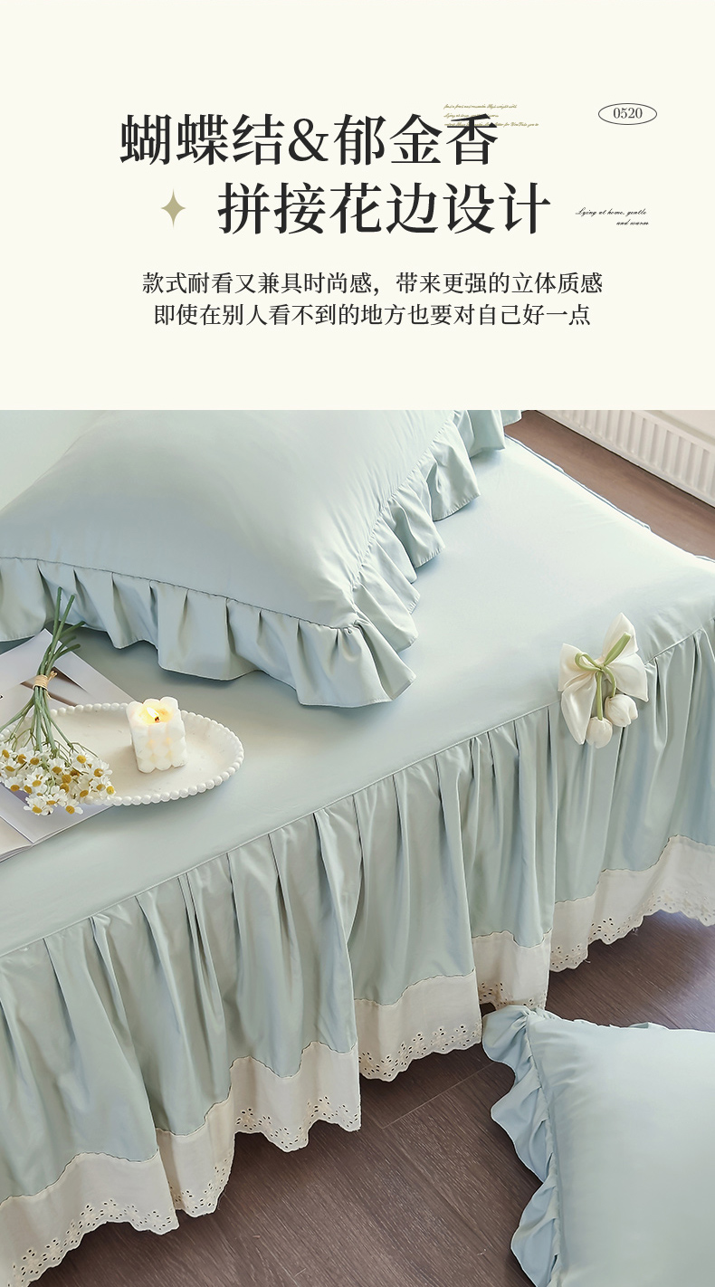 (总)乐朵家居 2026春夏 L-3花颂 蕾丝床裙,奶白,玉,绿,蓝,豆沙