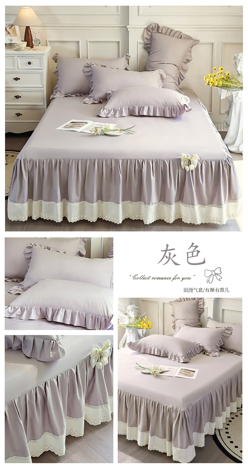 (总)乐朵家居 2026春夏 23-2觅彩 锦棉 蕾丝床裙,豆沙色,灰色,蓝色,绿色,奶白色,玉色