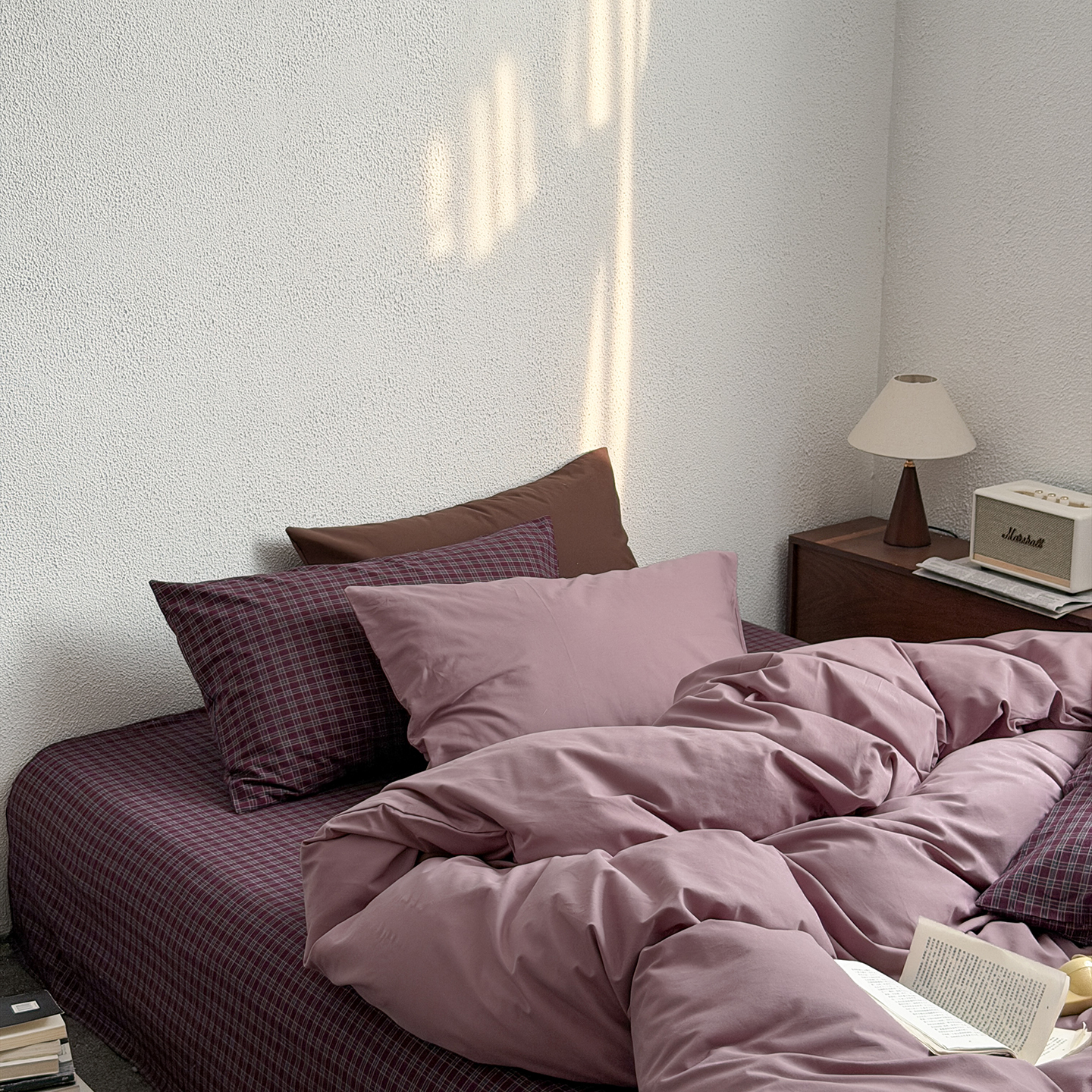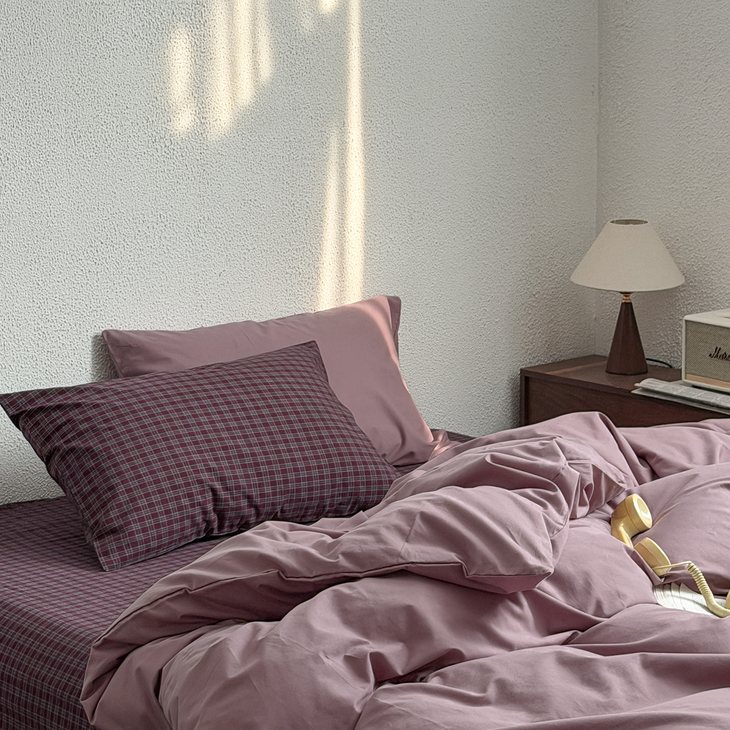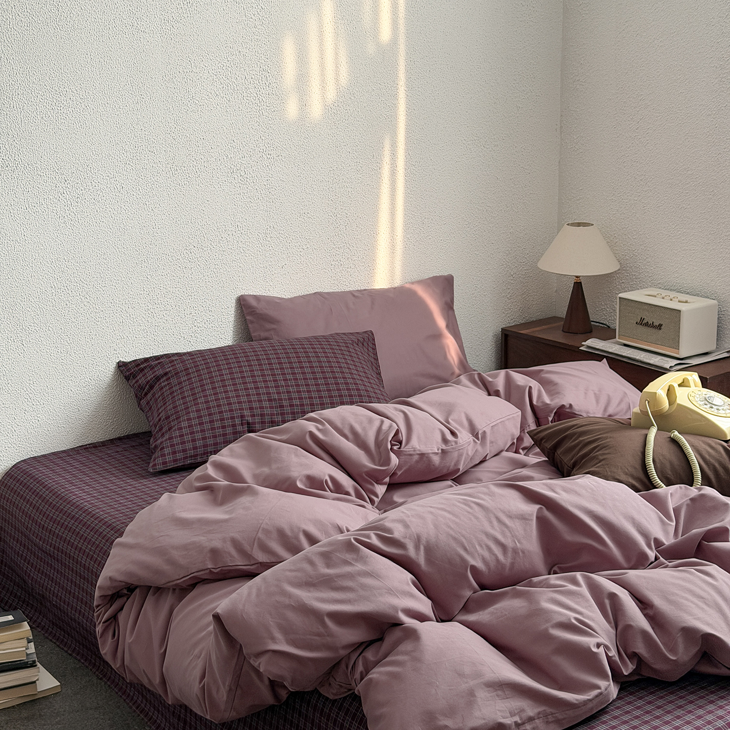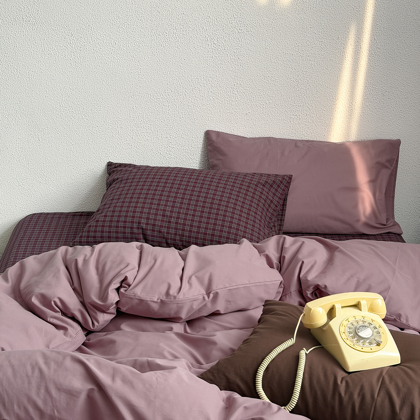 当前位置: 91家纺网 > 商品网购 > 床品套件 > 四件套 > 全棉普通四件套 > 蜜宿 2026新款全棉40s水洗棉四件套-紫雾海 紫雾海(枕套可可棕+胭脂紫)