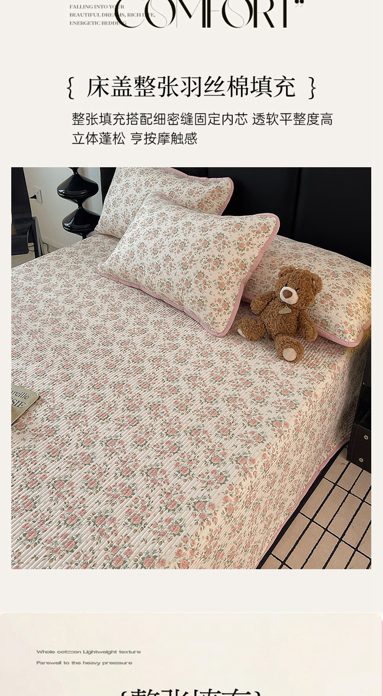 商品名称:金丝兔 2026新款复古碎花亲肤水洗棉单床盖仿棉夹棉床盖床盖三件套 朵真