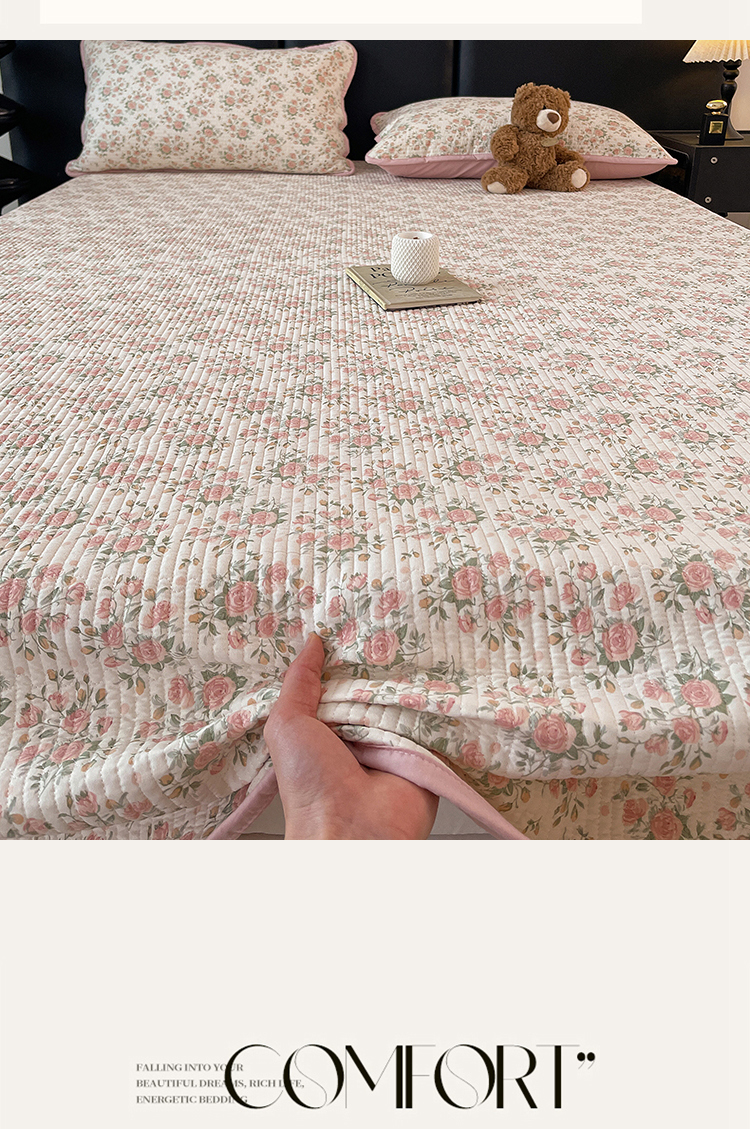 商品名称:金丝兔 2026新款复古碎花亲肤水洗棉单床盖仿棉夹棉床盖床盖三件套 植音