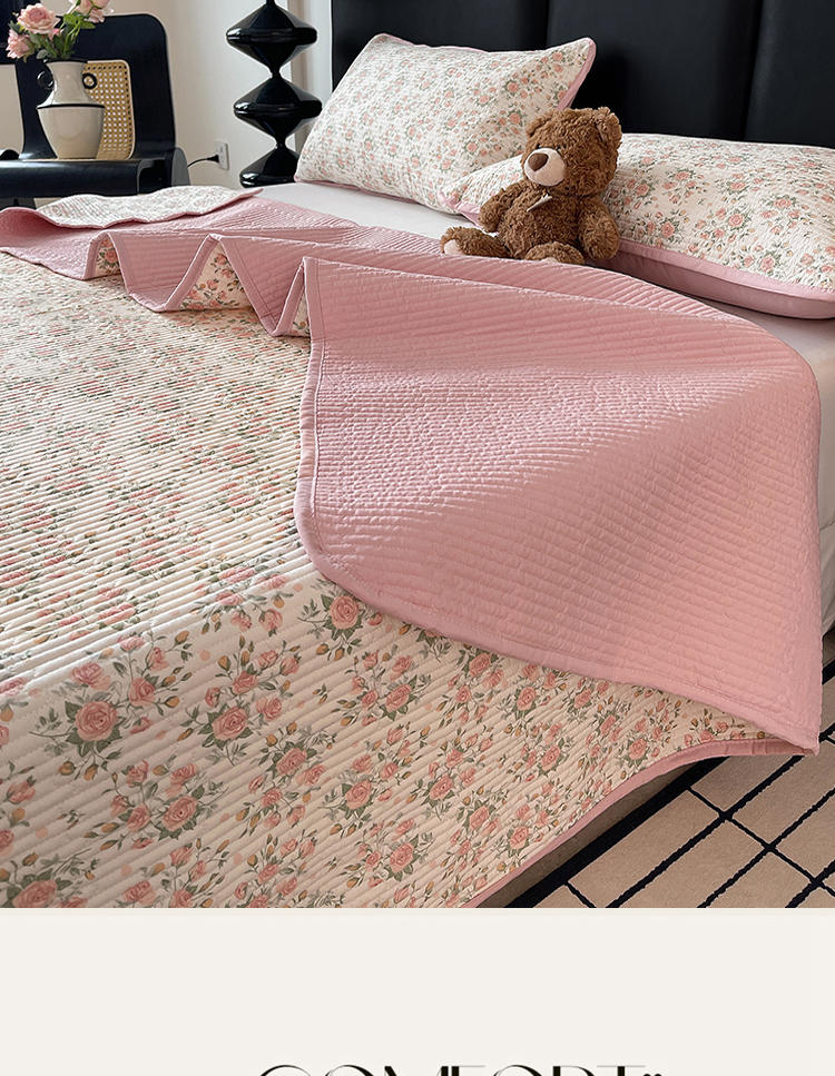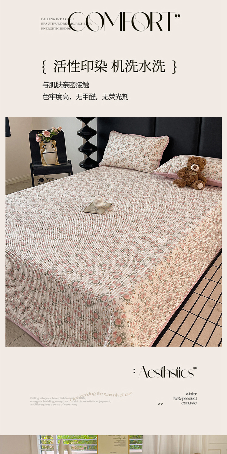 (总)金丝兔 2026新款复古碎花亲肤水洗棉单床盖仿棉夹棉床盖床盖三件套,艾芮,巴黎恋人,贝贝南瓜,布丁,呆呆熊,朵真,荔椿,蔓枝,茉莉清茶,童话,喜糯,小花喵,小灰格,樱桃小格,遇见,植音
