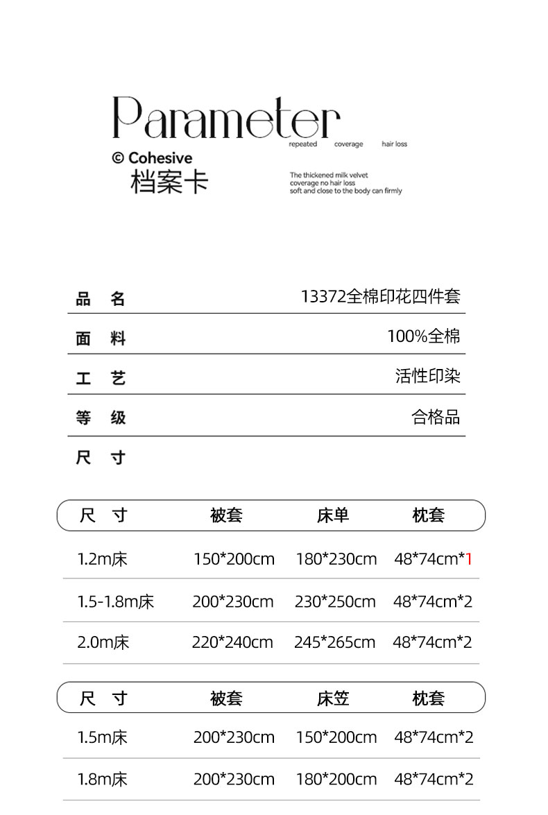【床笠款】1.5四件套-被套200x230 | ¥125.00 |