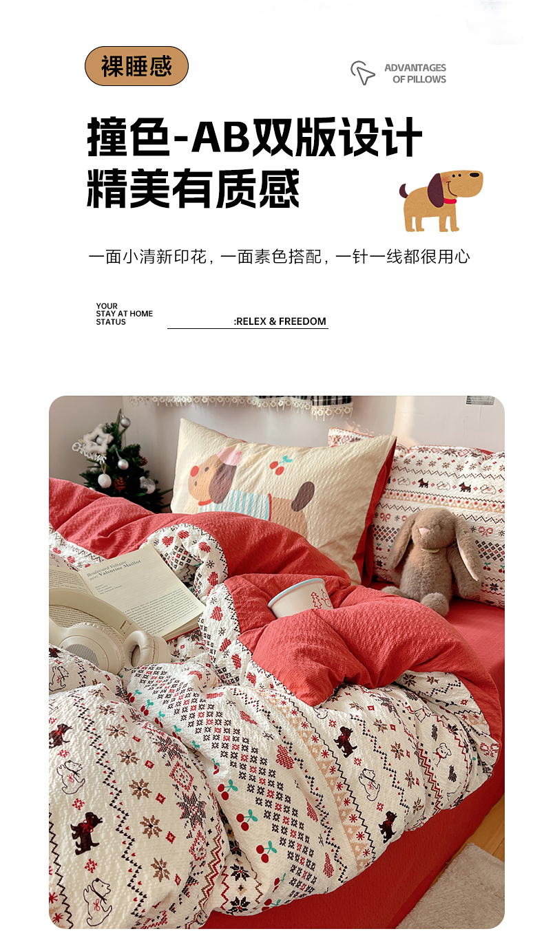 (总)顾里家纺 2026新款ins韩风刺绣云朵棉四件套,ins玫瑰,白桃少女,粉兔兔,蓝樱桃,圣诞树,线条狗,小桔梗,小蘑菇,小企鹅