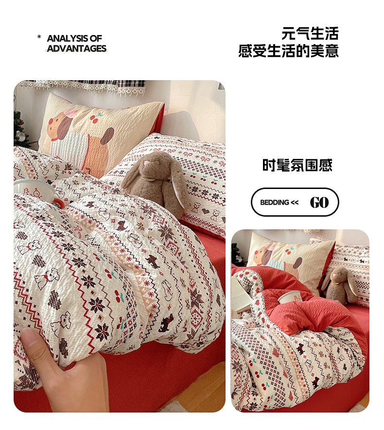 商品名称:(总)顾里家纺 2026新款韩风费尔岛系大版皱皱纱四件套【会员-2元 定制床笠+8元(小四件不做床笠)】
