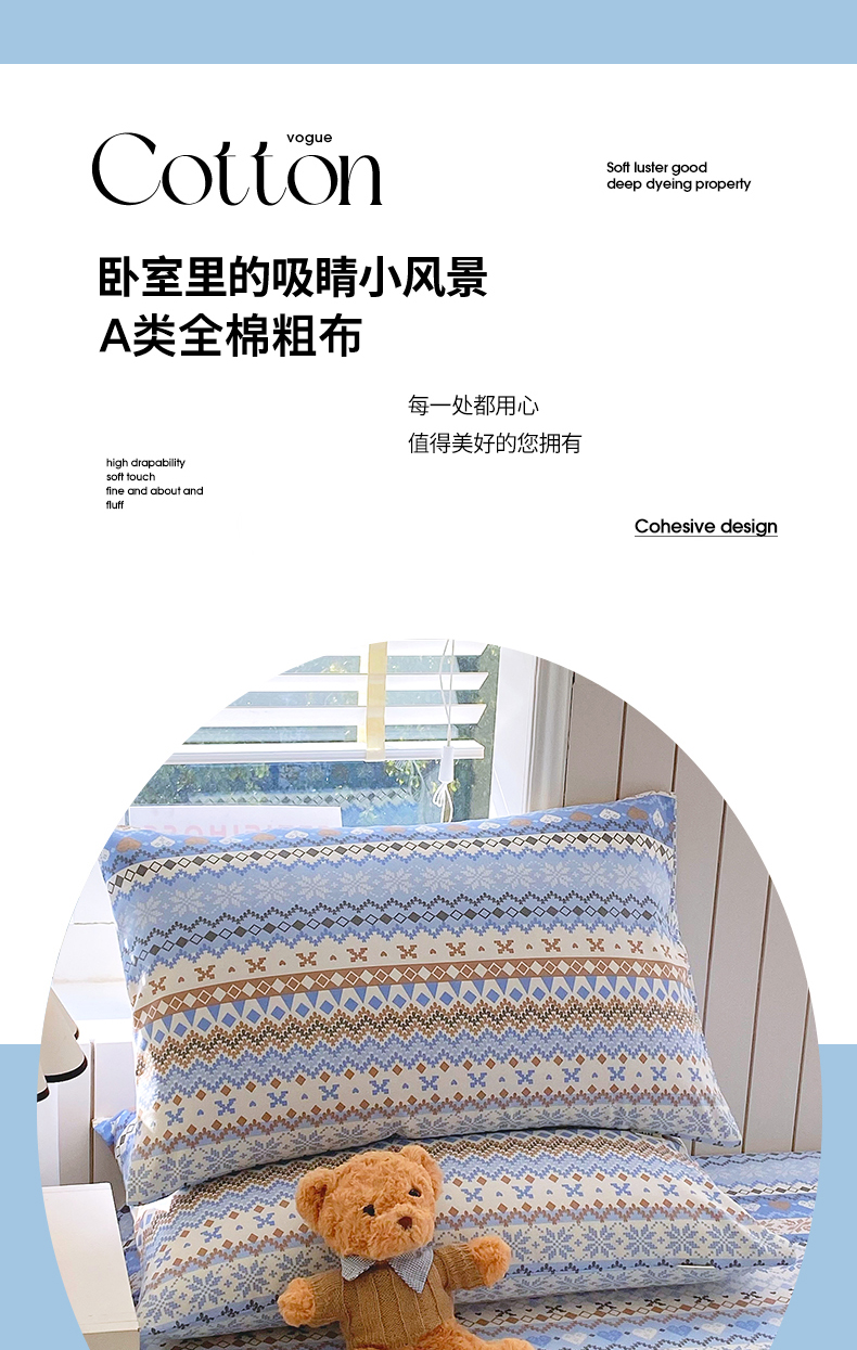 商品名称:金鑫汇家纺 2026新款全棉老粗布单品枕套系列 星辰-蓝