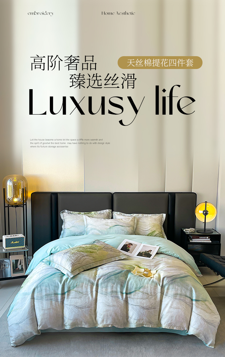 帛美家纺 2026新款天丝棉提花四件套 诺拉