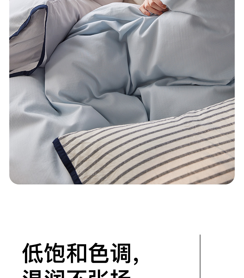 商品名称:佳汐蓝家纺 2026新款春夏人字纹小提花拼色系列四件套 人字纹浅蓝