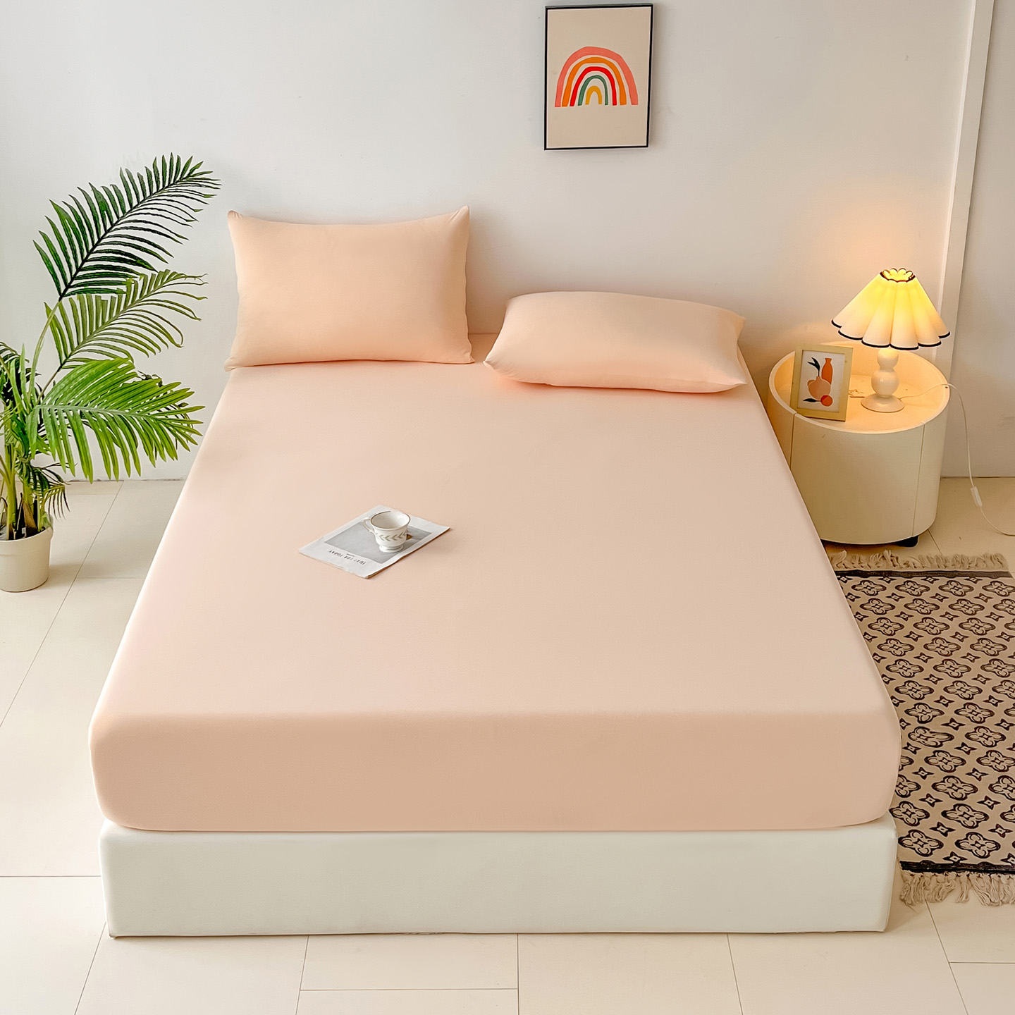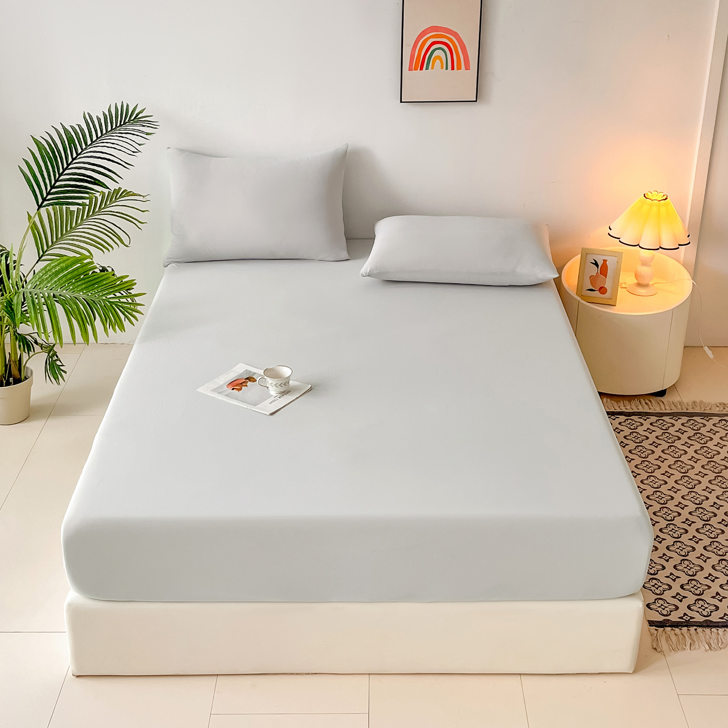 (总)亚龙工厂店 2026新款跨境热款云母冰丝席床笠三件套,深蓝,粉色,果绿,灰色,浅绿,天蓝,玉色,紫色,组合图仅展示