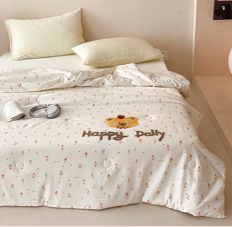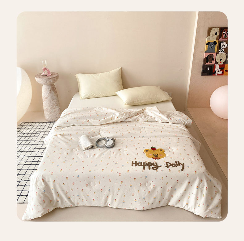 (总)2025新款全棉双层皱皱沙印花花边30%大豆夏凉被纯棉夏被被子被芯,赫本熊,花梦,花期,萌犬,墨颜,星月,玉兔-绿