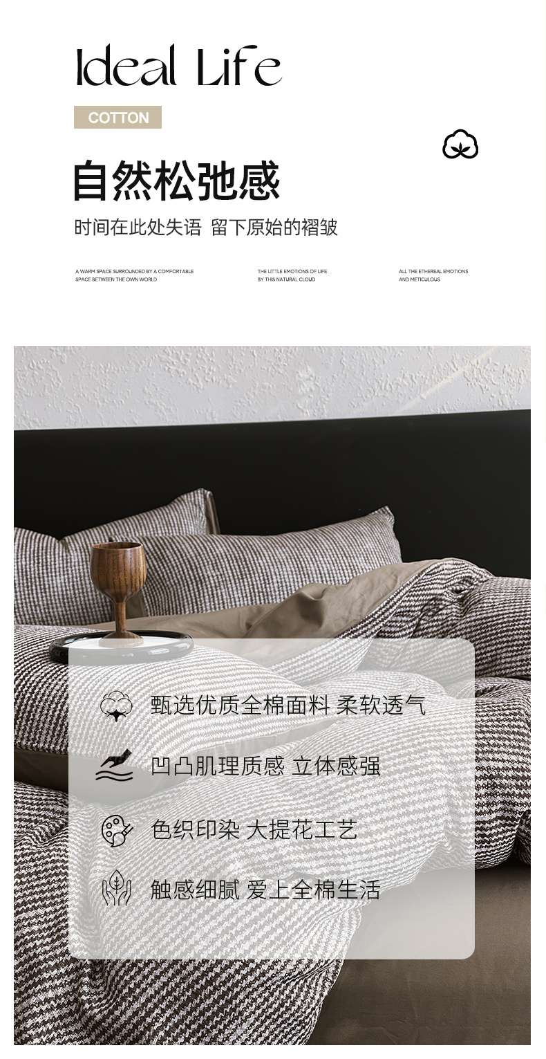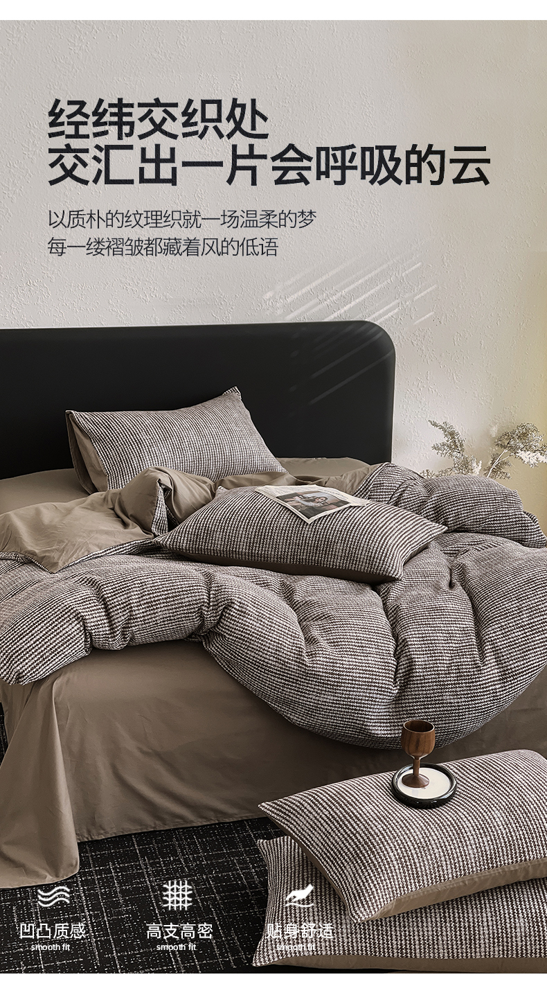 当前位置: 91家纺网 > 商品网购 > 床品套件 > 四件套 > 全棉普通四件套 > 琪格格纺织 2026新款纯棉纯棉色织肌理纹提花华夫格纯棉轻奢简约款四件套 莫诺克