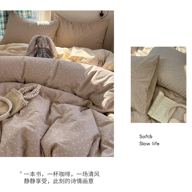 当前位置: 91家纺网 > 商品网购 > 床品套件 > 四件套 > 全棉普通四件套 > XIWEN-希文家纺 2026春夏新款40支全棉纯棉13372小清新印花四件套 浅爱