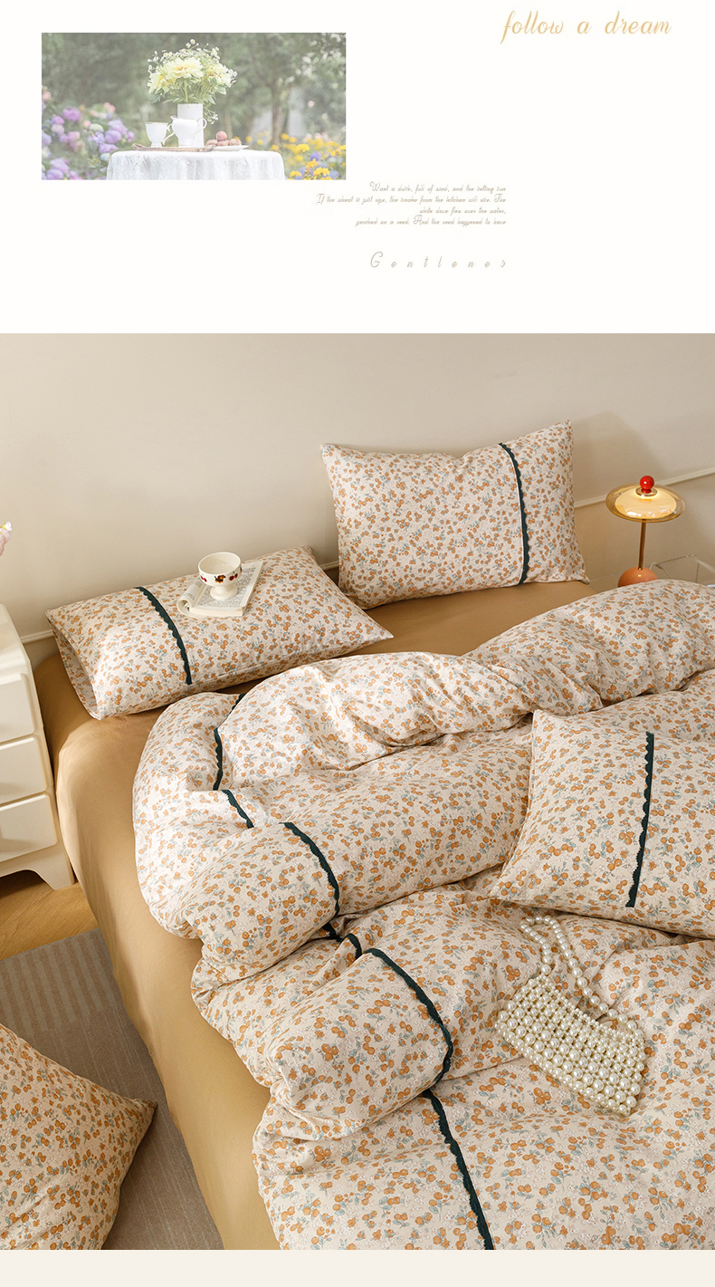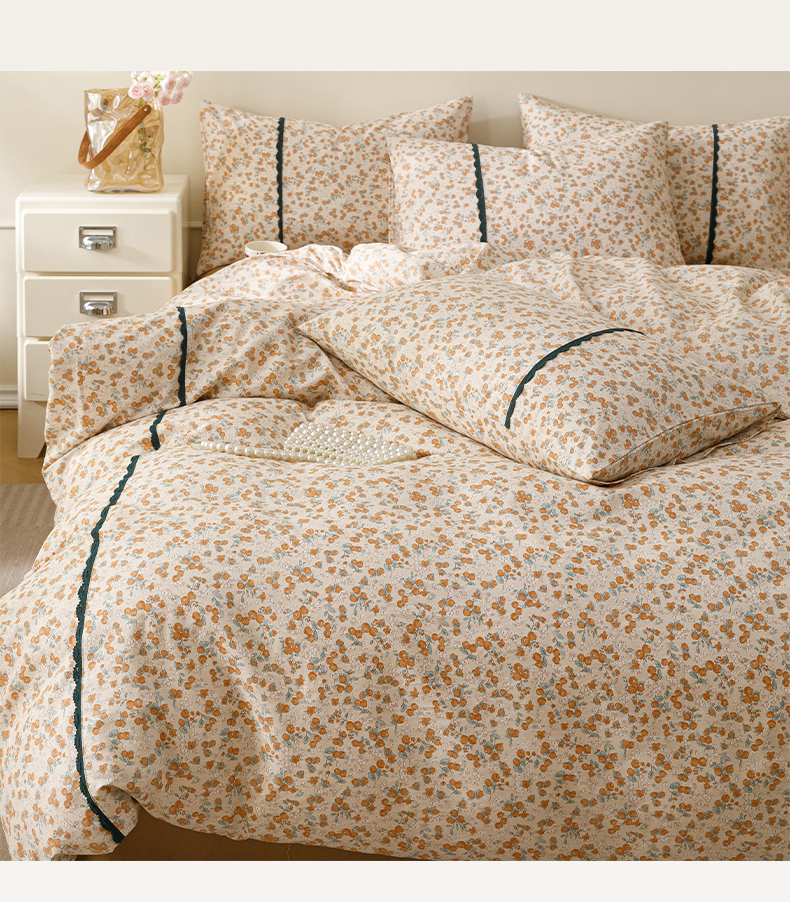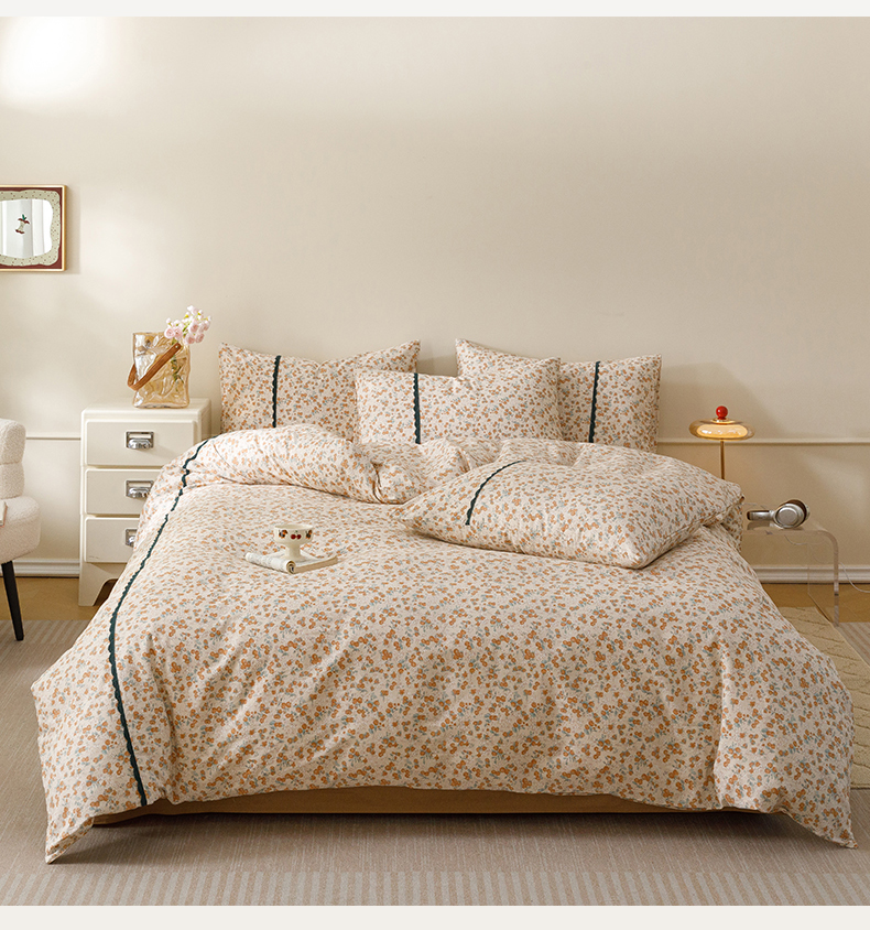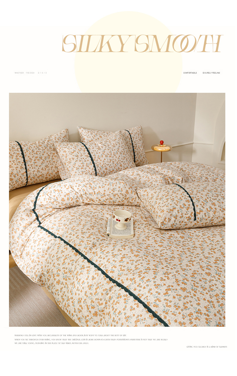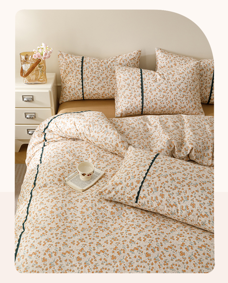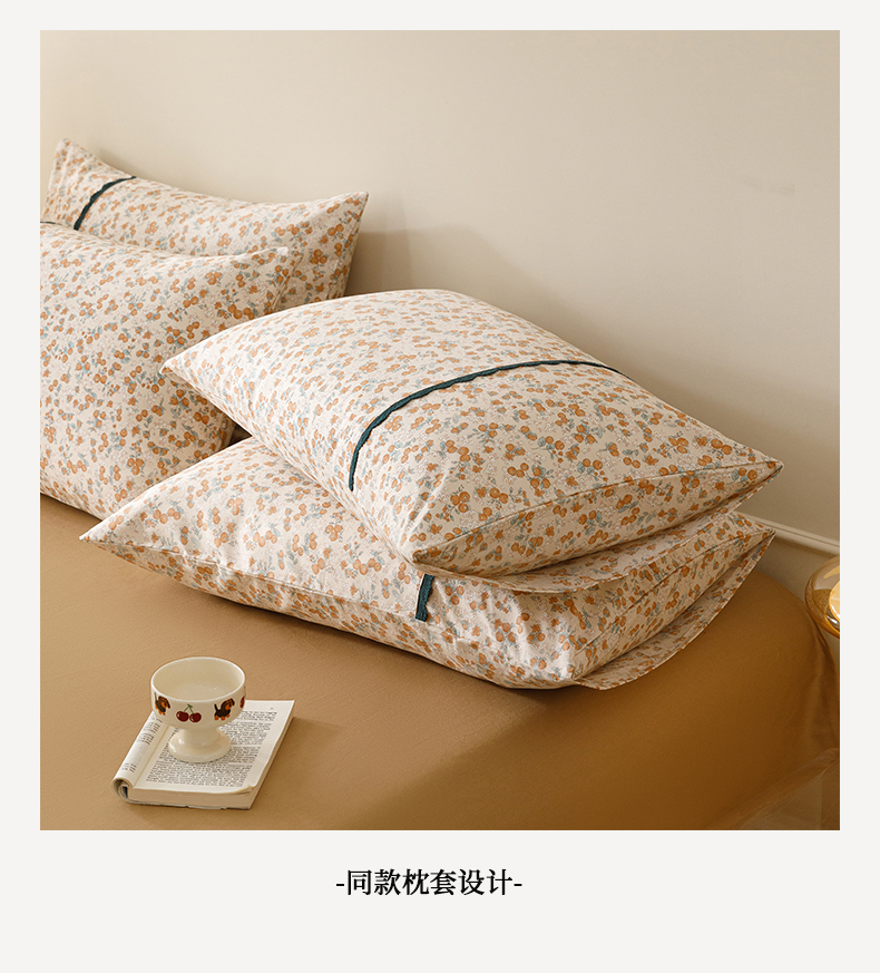 当前位置: 91家纺网 > 商品网购 > 床品套件 > 四件套 > 全棉普通四件套 > 女子家纺 2026新款40支13070全棉纯棉斜纹印花蕾丝四件套 橘果团子