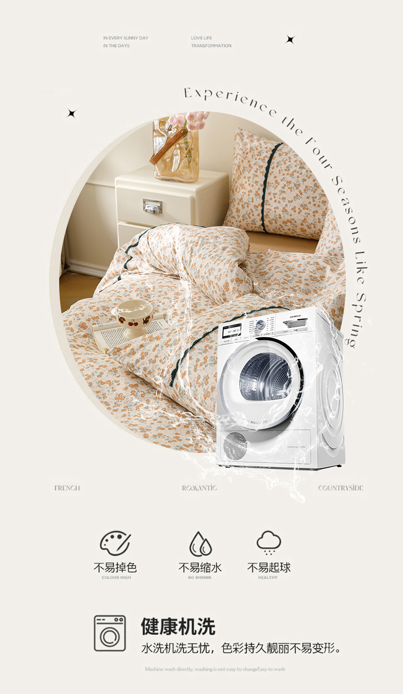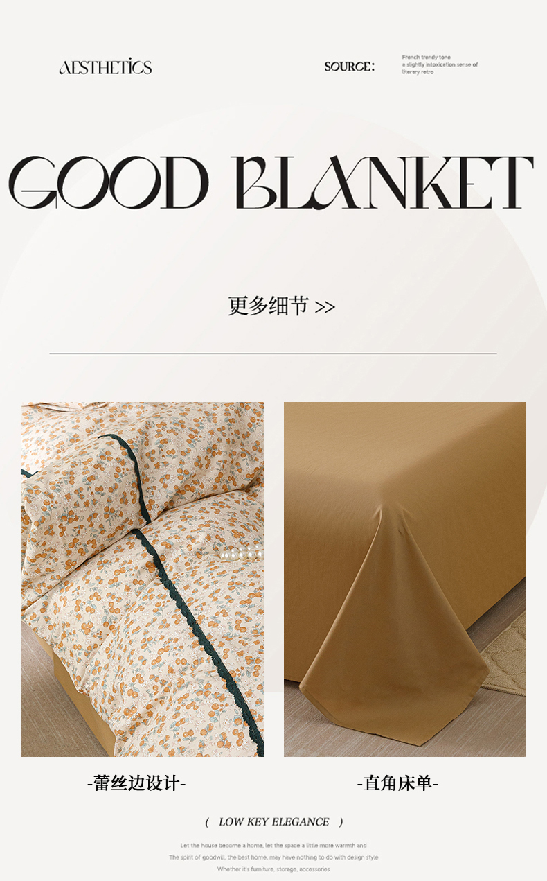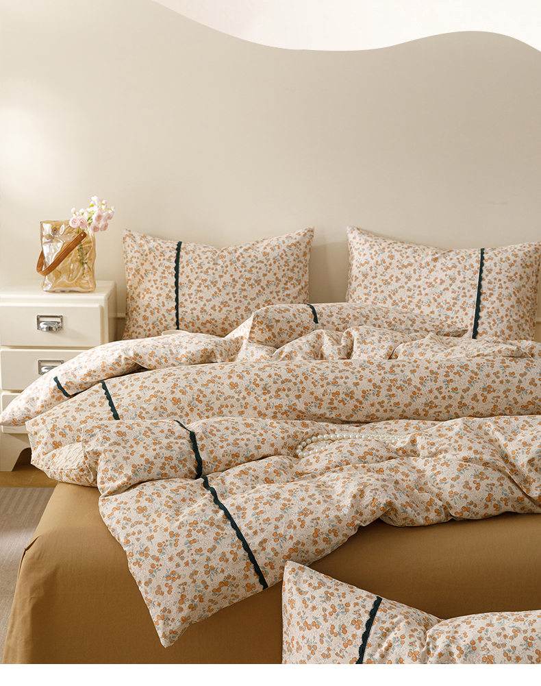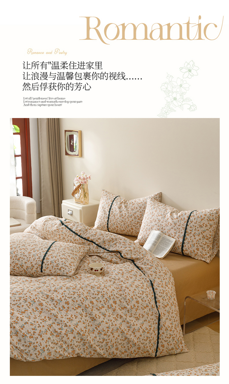 当前位置: 91家纺网 > 商品网购 > 床品套件 > 四件套 > 全棉普通四件套 > 女子家纺 2026新款40支13070全棉纯棉斜纹印花蕾丝四件套 橘果团子