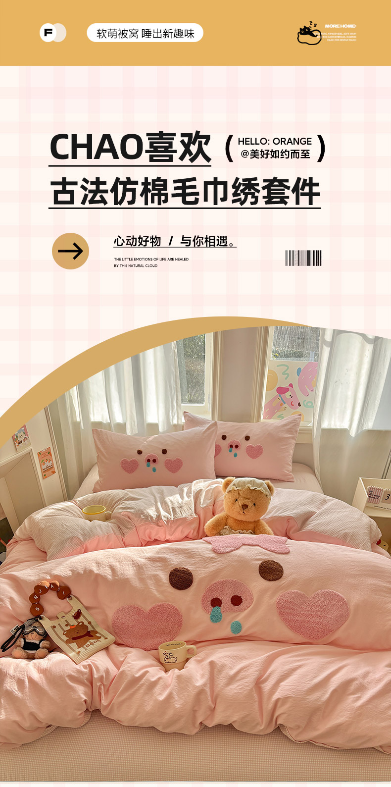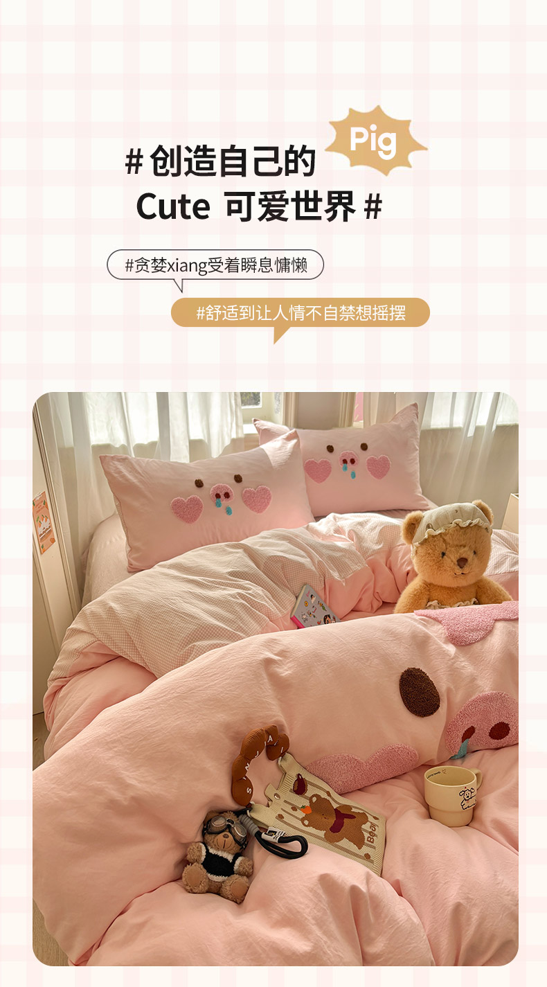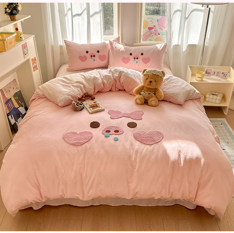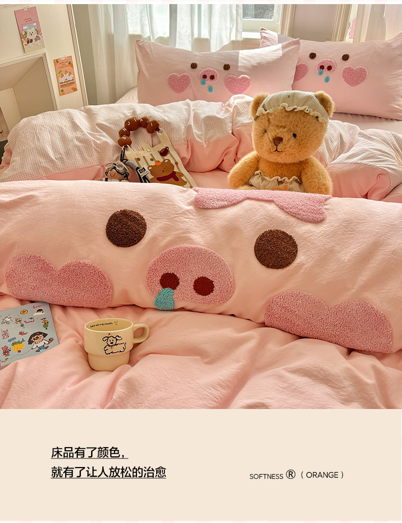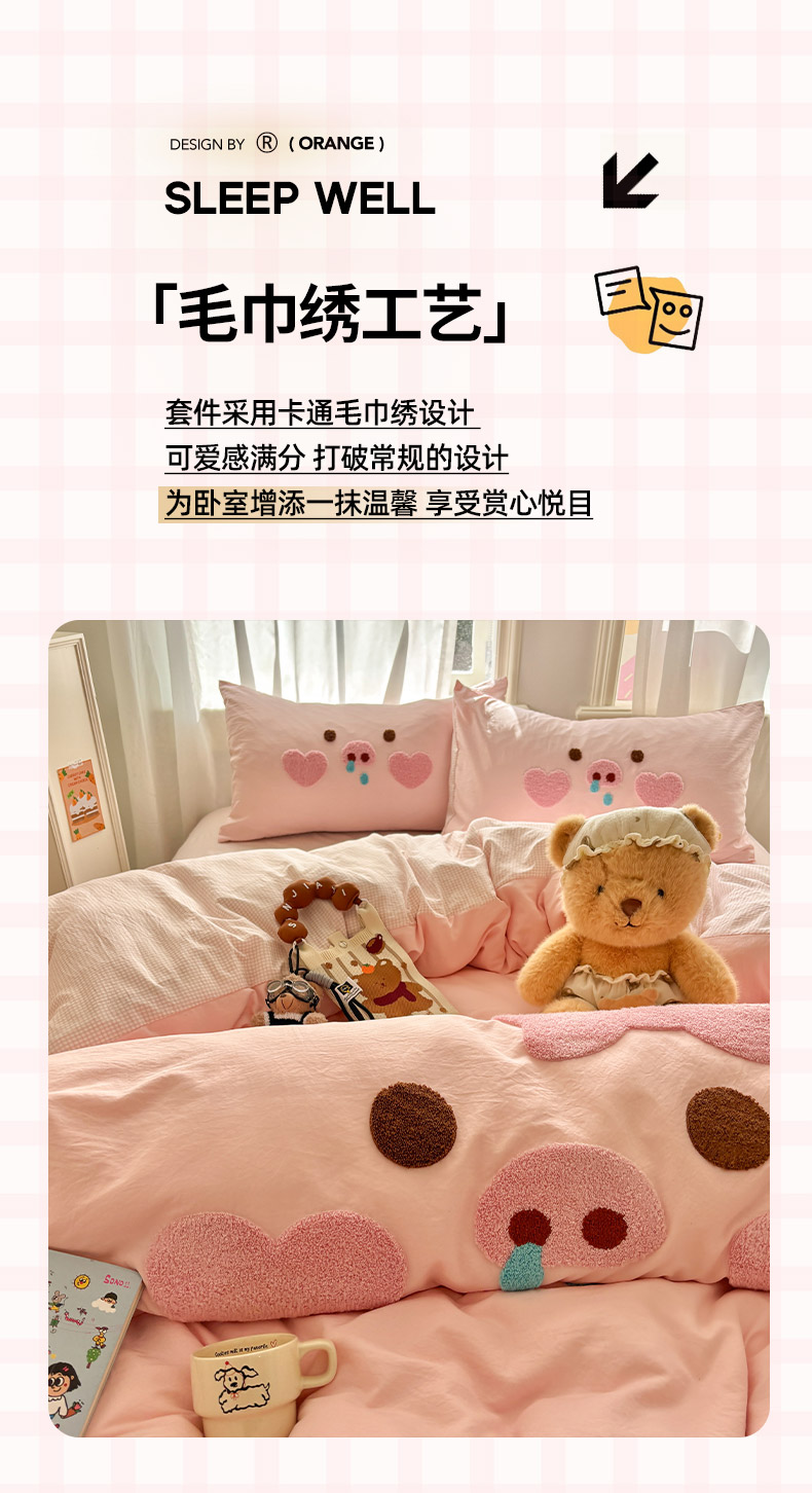 当前位置: 91家纺网 > 商品网购 > 床品套件 > 四件套 > 其它四件套 > 色鬼布艺高端家居主号 2026新款古法毛巾绣四件套 爱心猪猪-粉