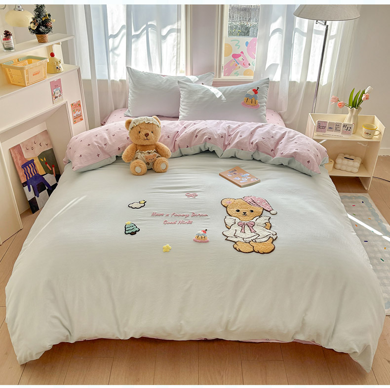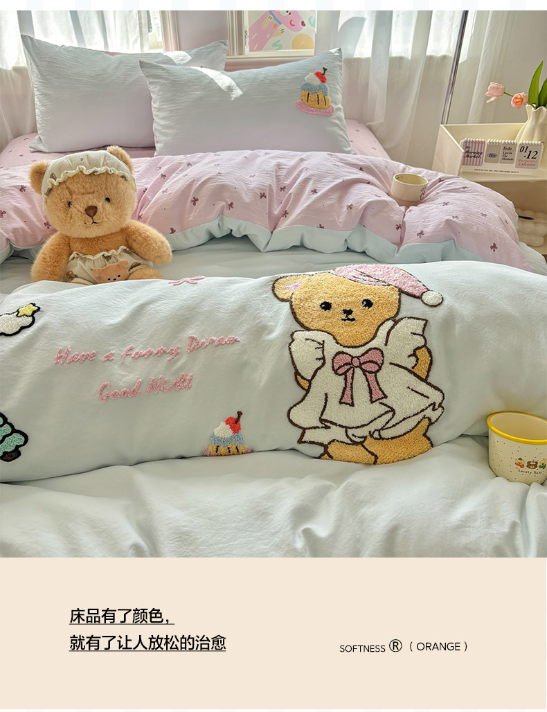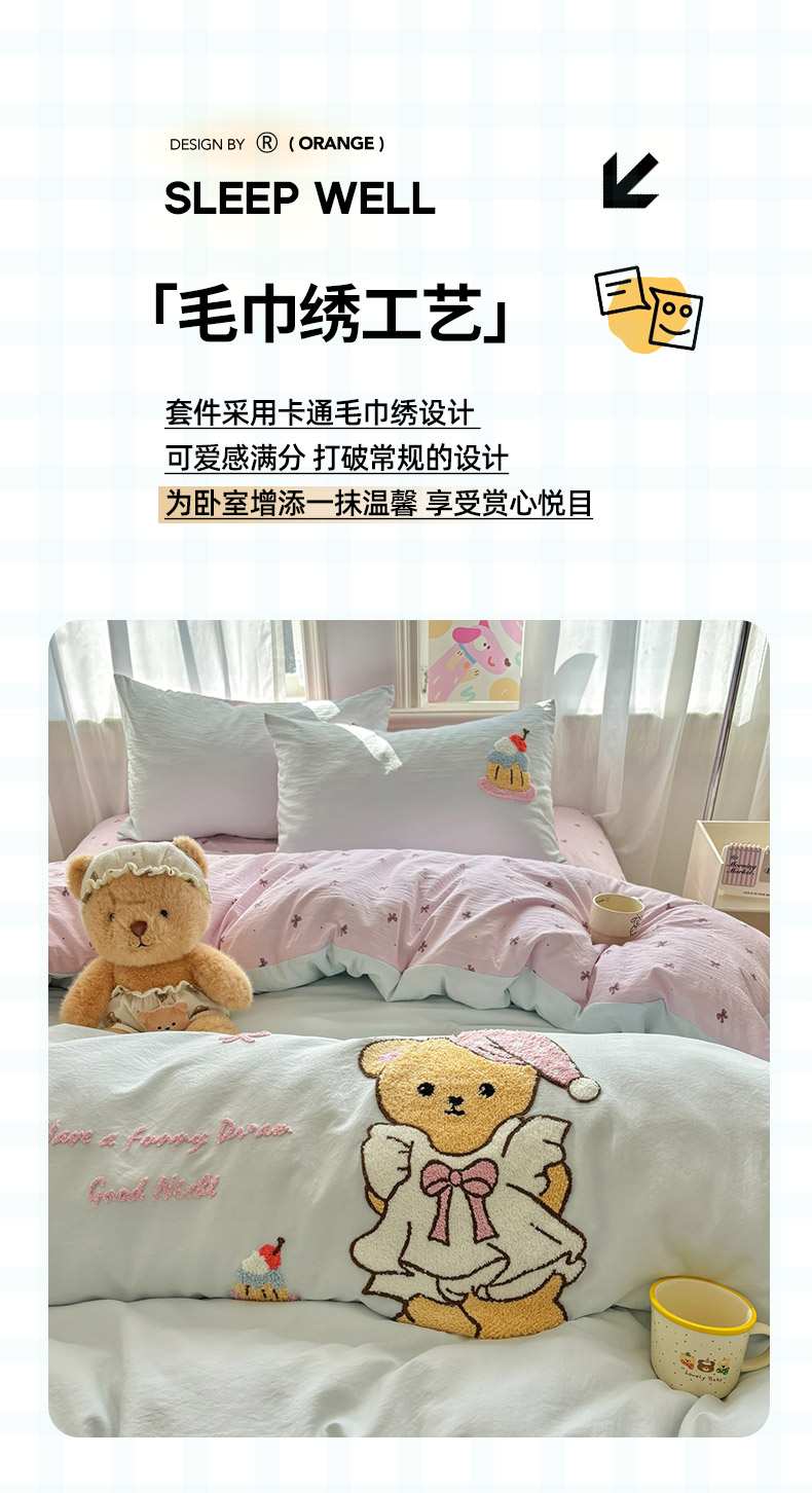当前位置: 91家纺网 > 商品网购 > 床品套件 > 四件套 > 其它四件套 > 色鬼布艺高端家居主号 2026新款古法毛巾绣四件套 蛋糕小熊-蓝