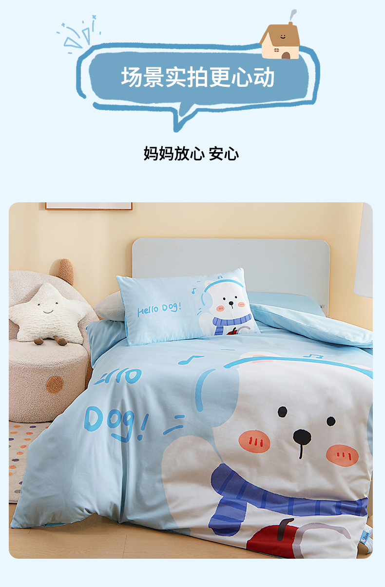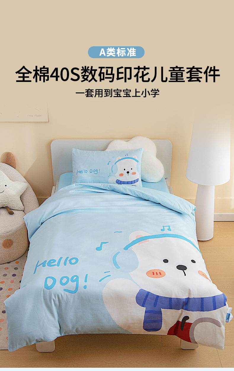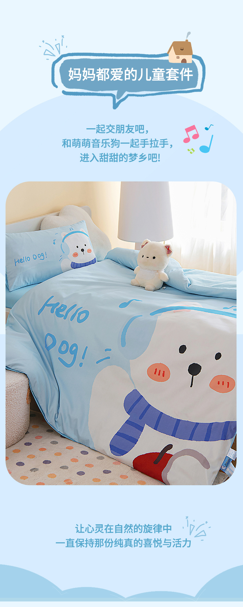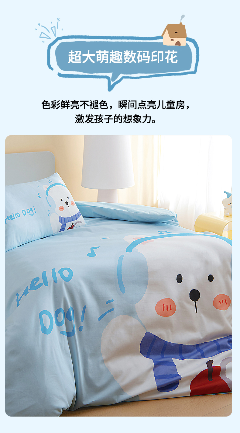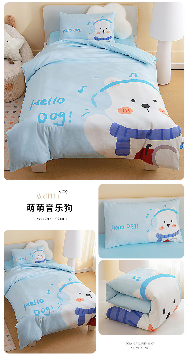当前位置: 91家纺网 > 商品网购 > 床品套件 > 四件套 > 全棉普通四件套 > 御棉坊 2026新款A类40S全棉数码印花-萌萌季系列幼儿园儿童套件 萌萌音乐狗