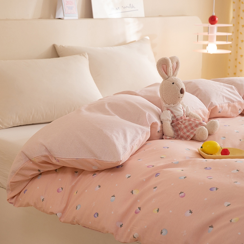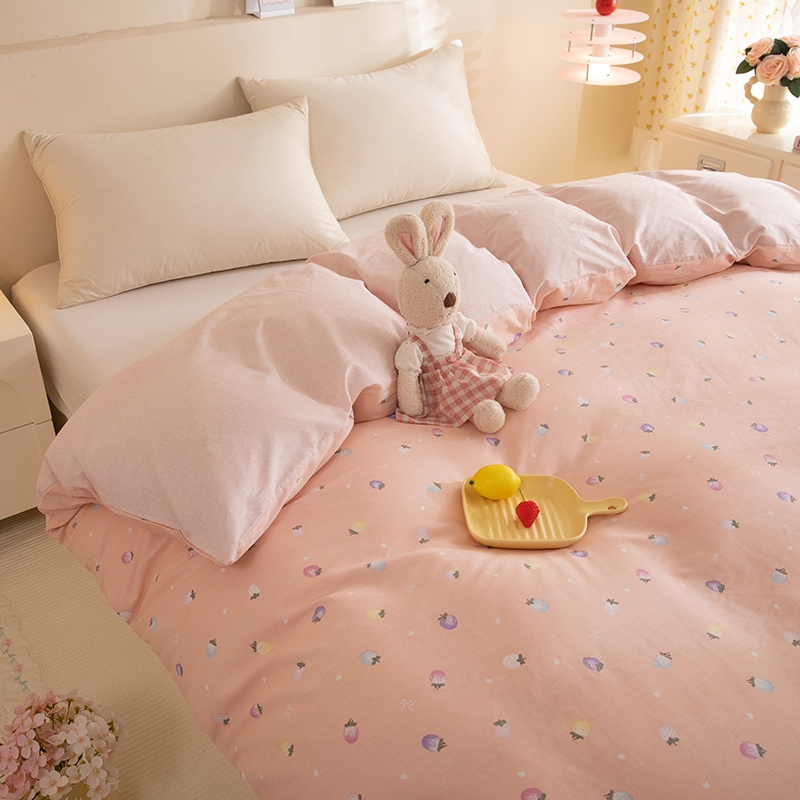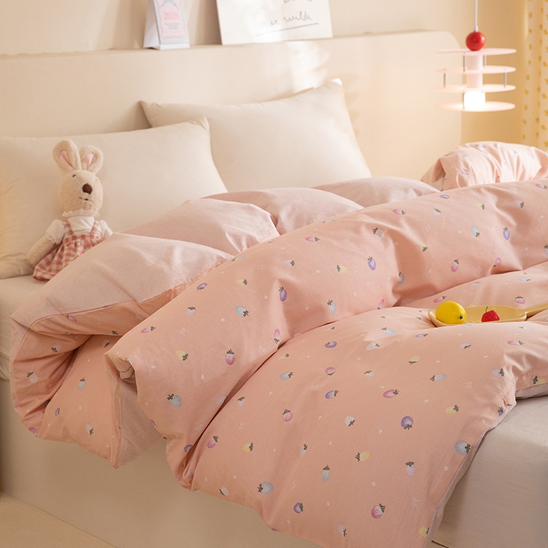 八十八家纺 2025新款全棉12868系列单品被套 奶油草莓