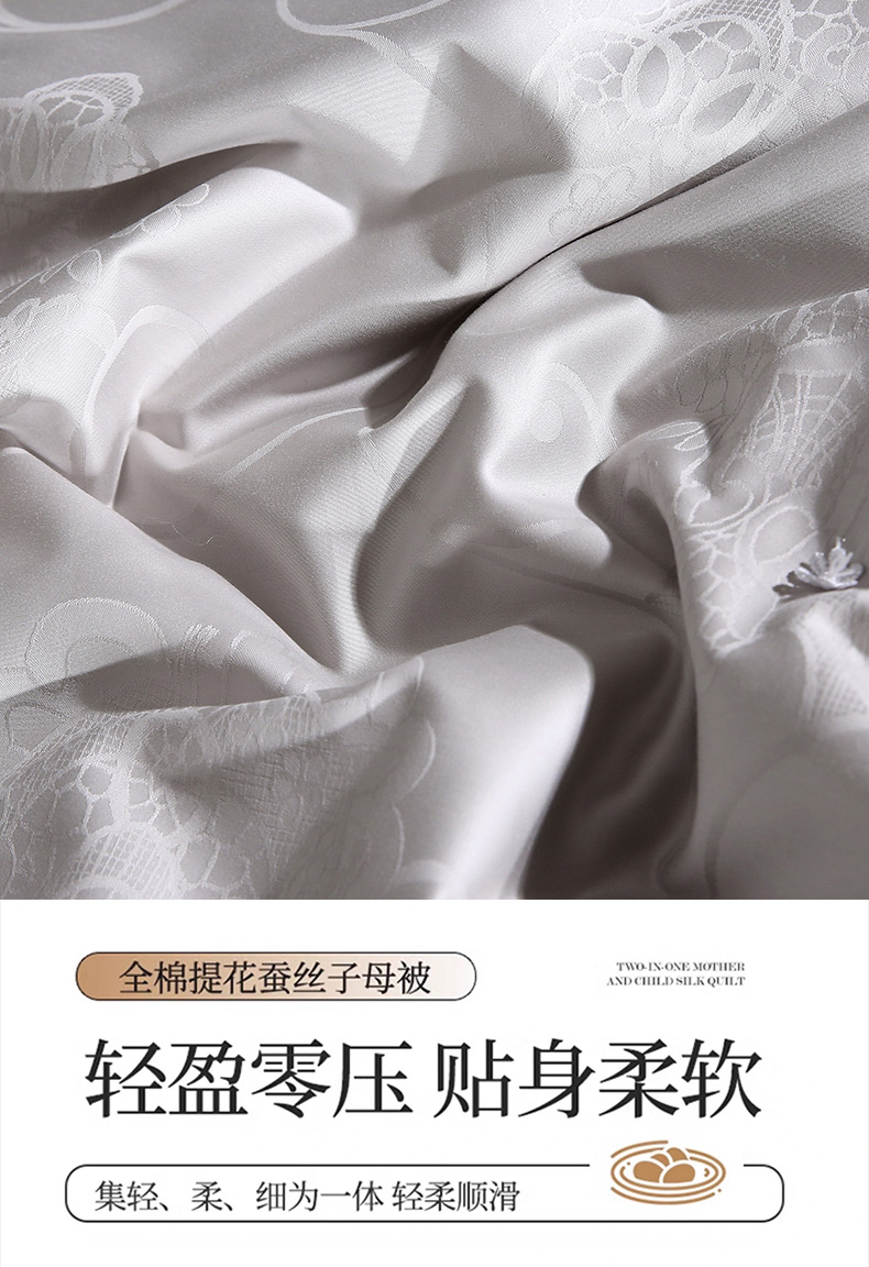 • 91家纺网 家纺一手货源 找家纺 (总)犇牛仓储供应链 2026新款全棉提花蚕丝蛋白拉链二合一子母被被子被芯,灰色,粉色,玉色,红色,白色