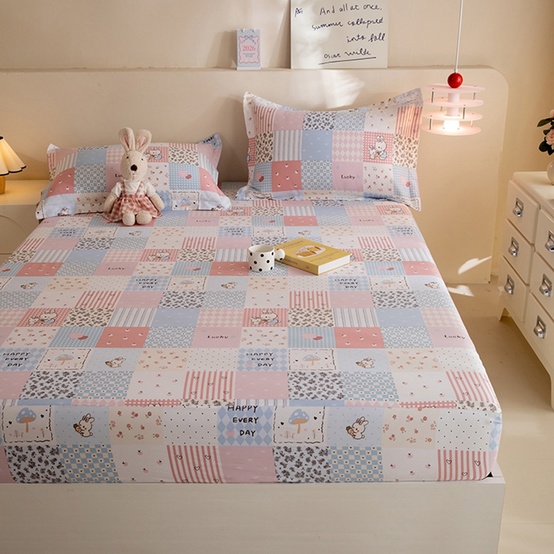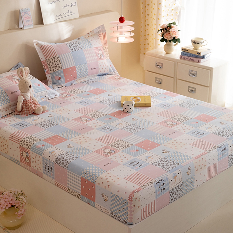 八十八家纺 2025新款全棉12868系列单品床笠 花点小兔