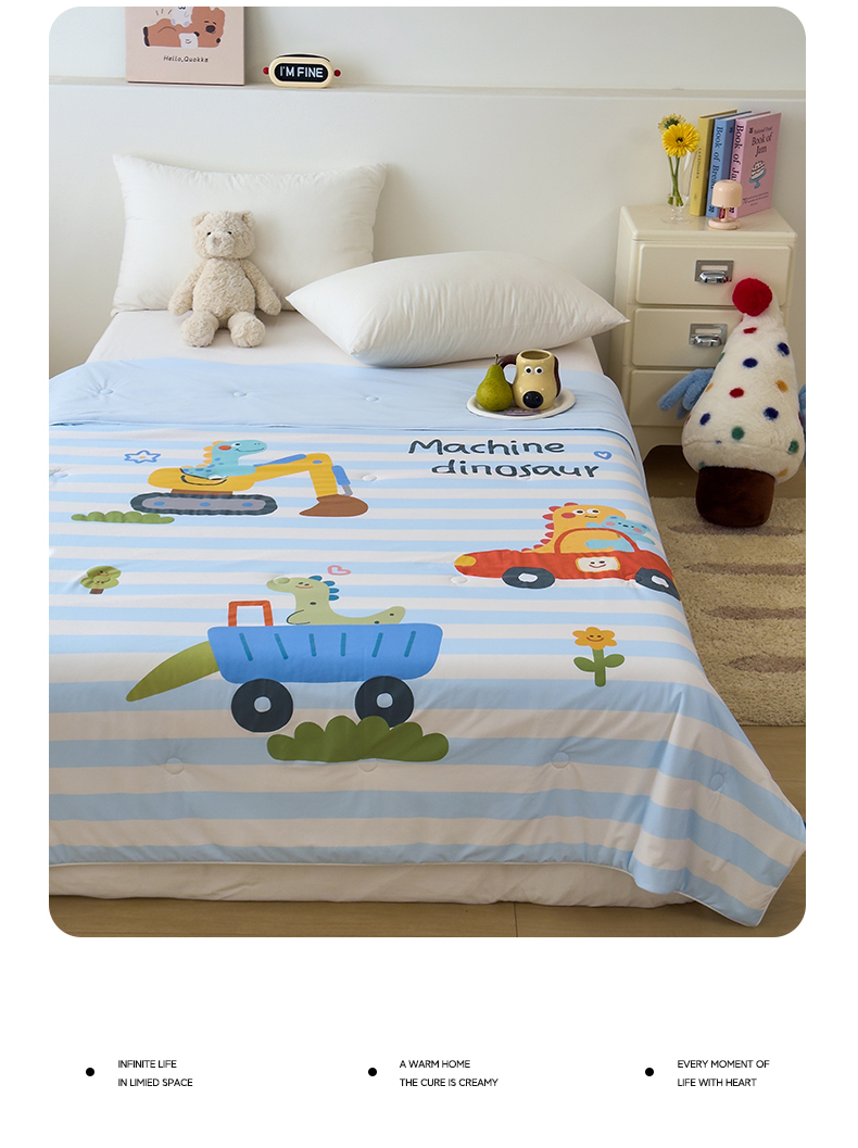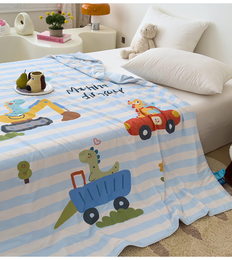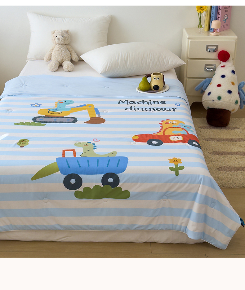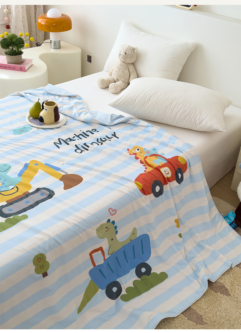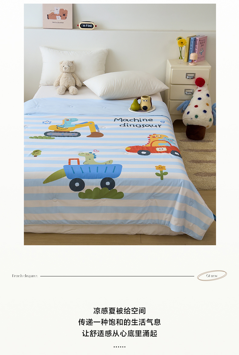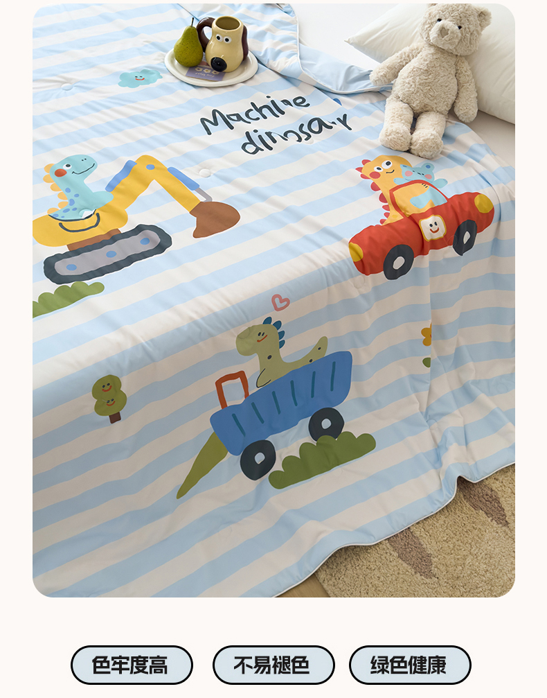 • 91家纺网 家纺一手货源 找家纺 岚司羽 2026新款卡通锦氨凉感夏被系列 小恐龙挖掘队