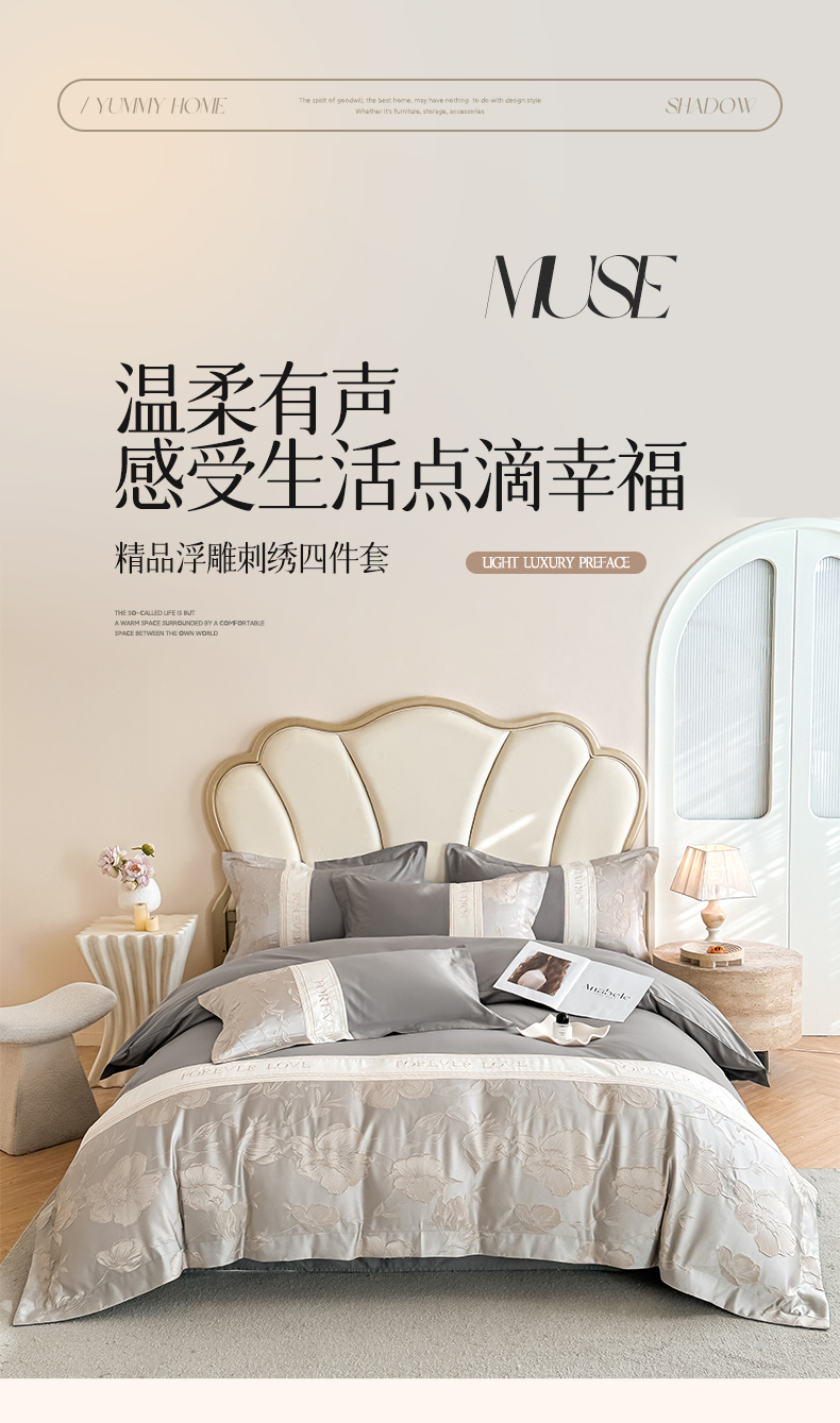当前位置: 91家纺网 > 商品网购 > 床品套件 > 四件套 > 其它四件套 > 润锦云 2026新款140克精品浮雕刺绣四件套-浮光韵梦 浮光韵梦-雅士灰