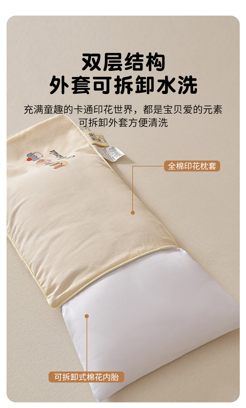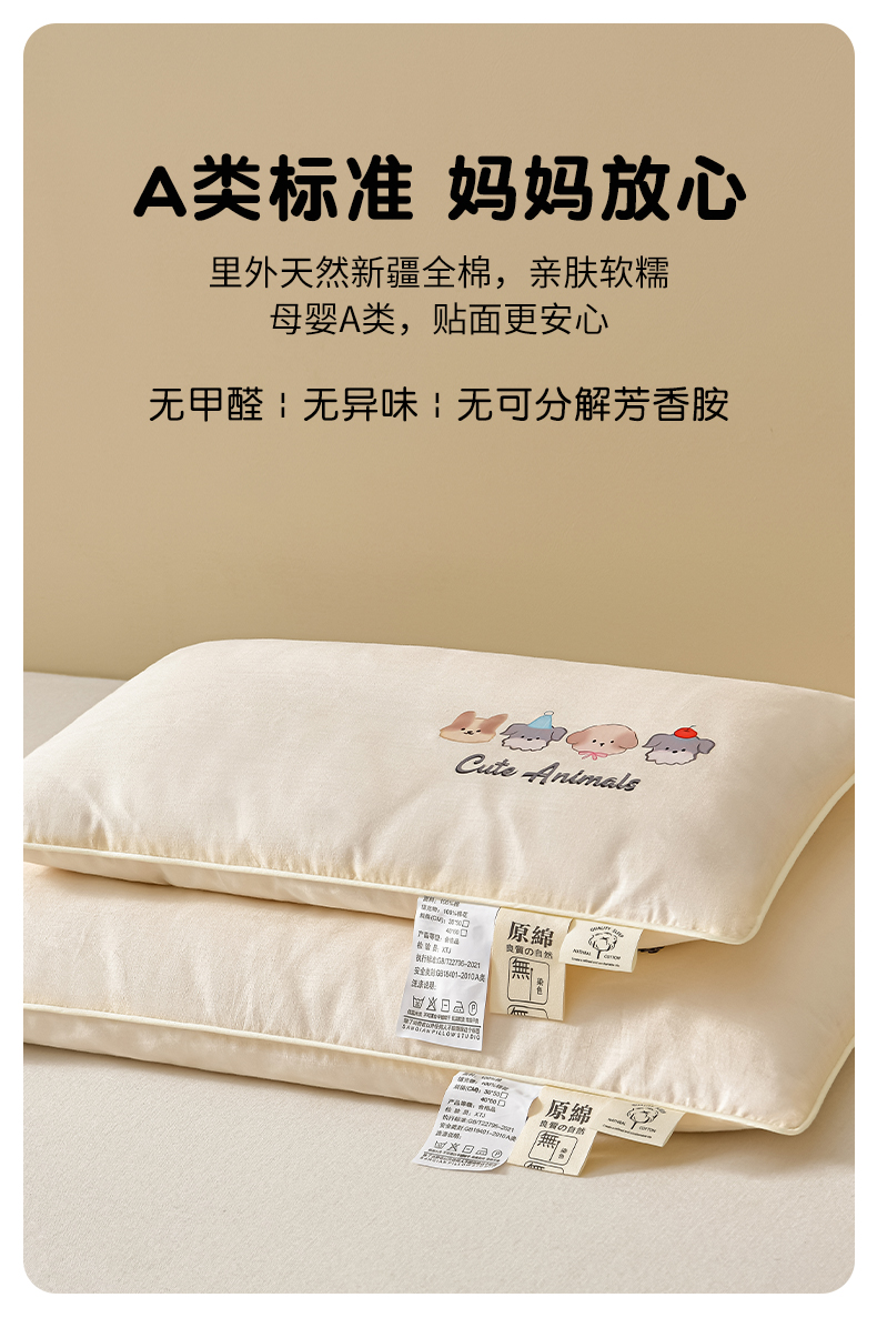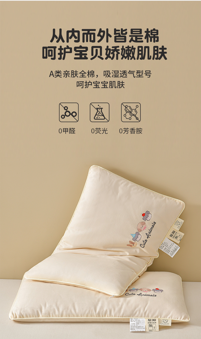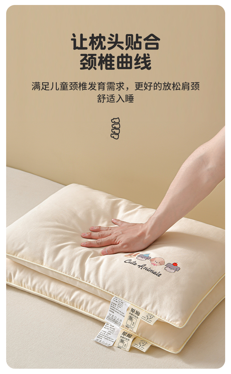 商品名称:(总)小桃姐家纺 2025新款全棉纯棉卡通棉花枕纯棉儿童枕芯30*50cm学生枕芯40*60cm