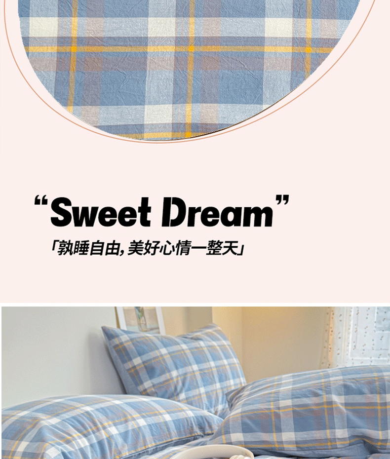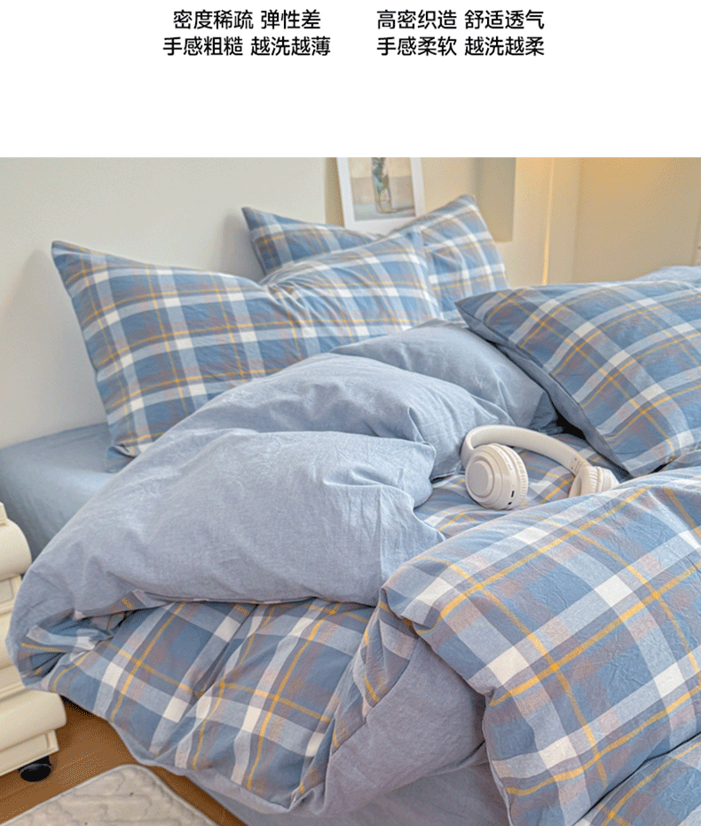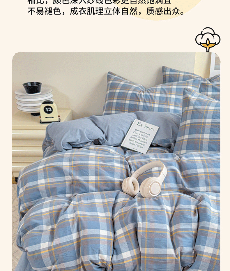 (总)佑佳家纺 2026新款全棉色织水洗棉四件套,橙蓝格,嘟嘟柚红,灰色空间,简兮-蓝,蓝小格,洛林-灰,绿大格,马里奥-粉,米小格,莫尼-灰,牛油果-绿,羽梦-粉,组合图仅供展示-不可下单