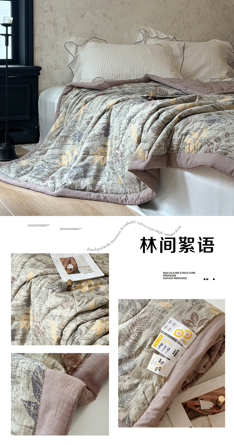 商品名称:中国龙家纺 2026新款木棉皱皱纱单夏被被子被芯 林间絮语