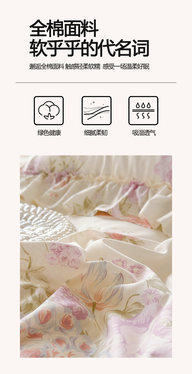 当前位置: 91家纺网 > 商品网购 > 床品套件 > 四件套 > 全棉普通四件套 > 瑞宝 2026新款春款全棉印花床裙四件套【控价265起 各平台严格控价:所有尺寸在扣除店铺优惠券后利润不得少于70(包含活动期)】 漫步花庭