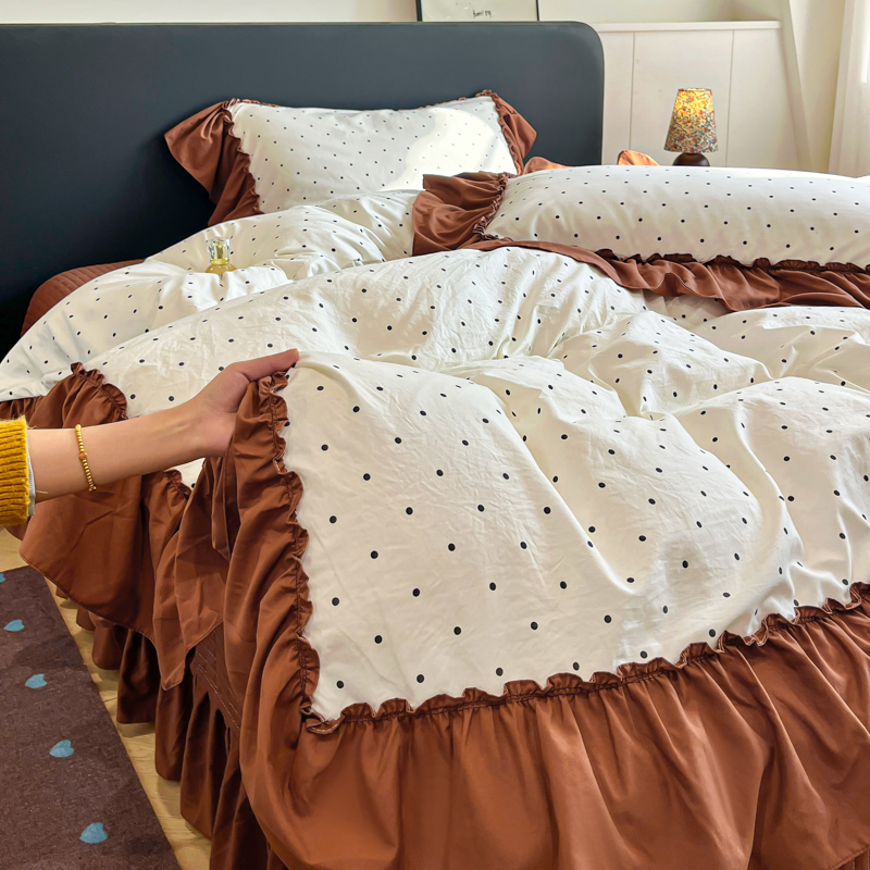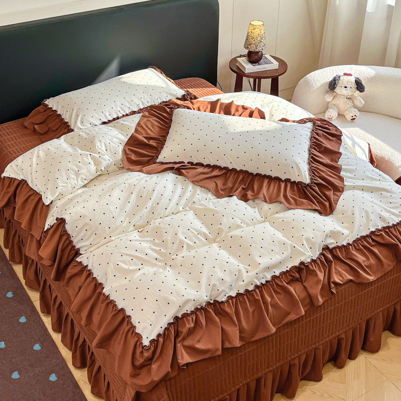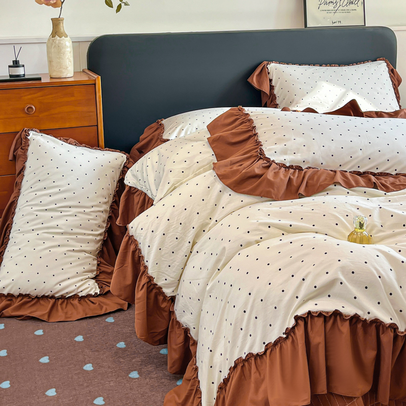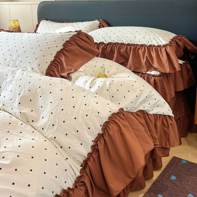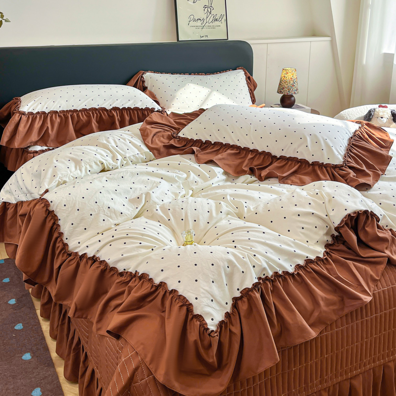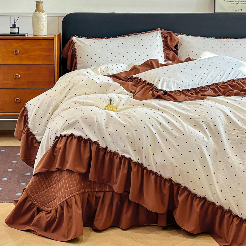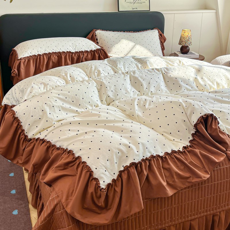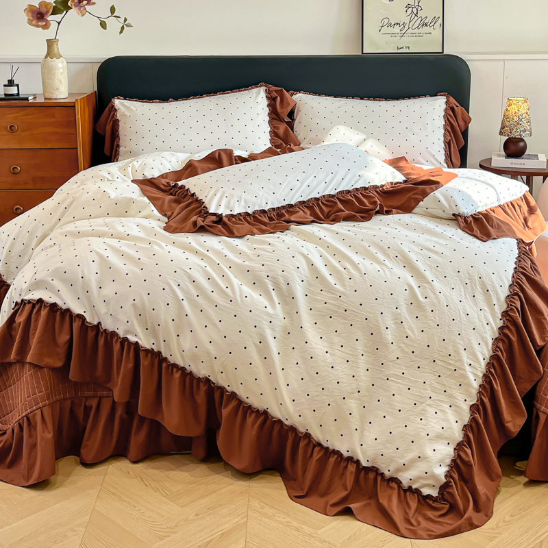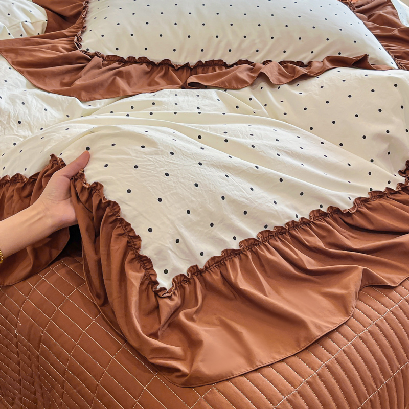 尚美 2026新款法式复古大花边仿棉床盖四件套 米波点