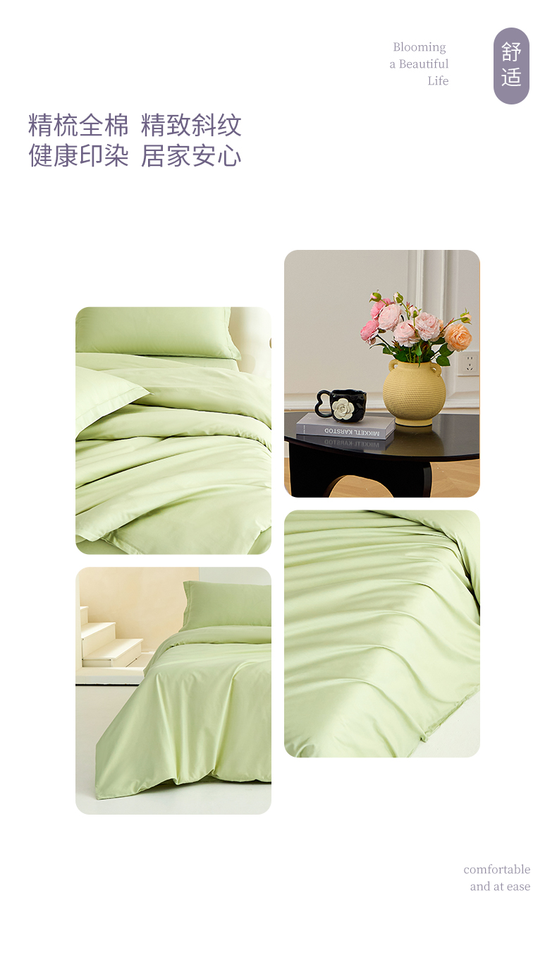 (总)元元家居(元元被业) 2026新款全棉纯棉13372床盖款四件套-纯色款,果粉,罗兰紫,麦田绿,天梦蓝,炫彩粉,雅灰