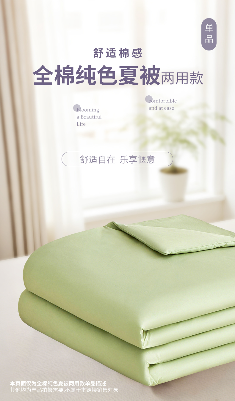 元元家居(元元被业) 2026新款全棉纯棉13372纯色两用夏被夏凉被空调被 麦田绿