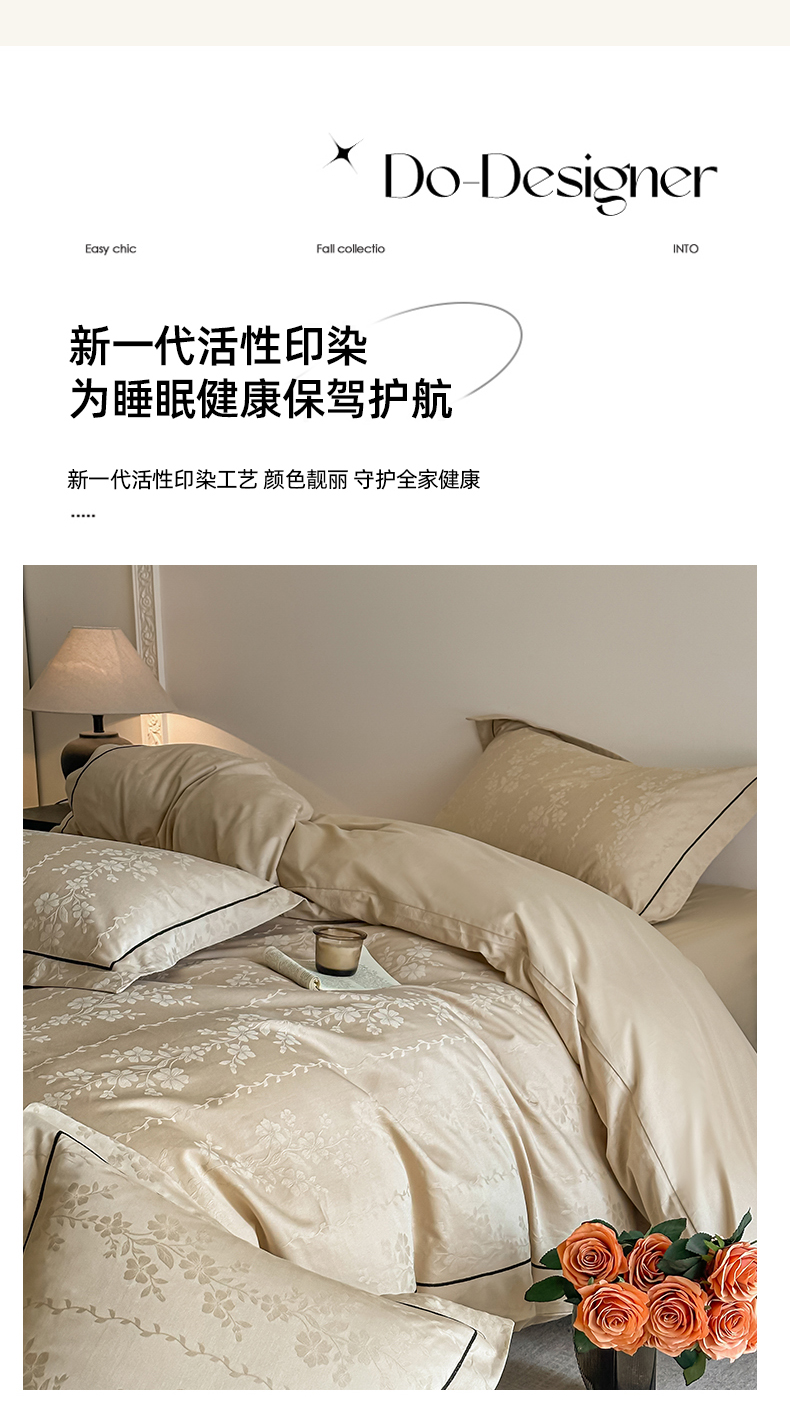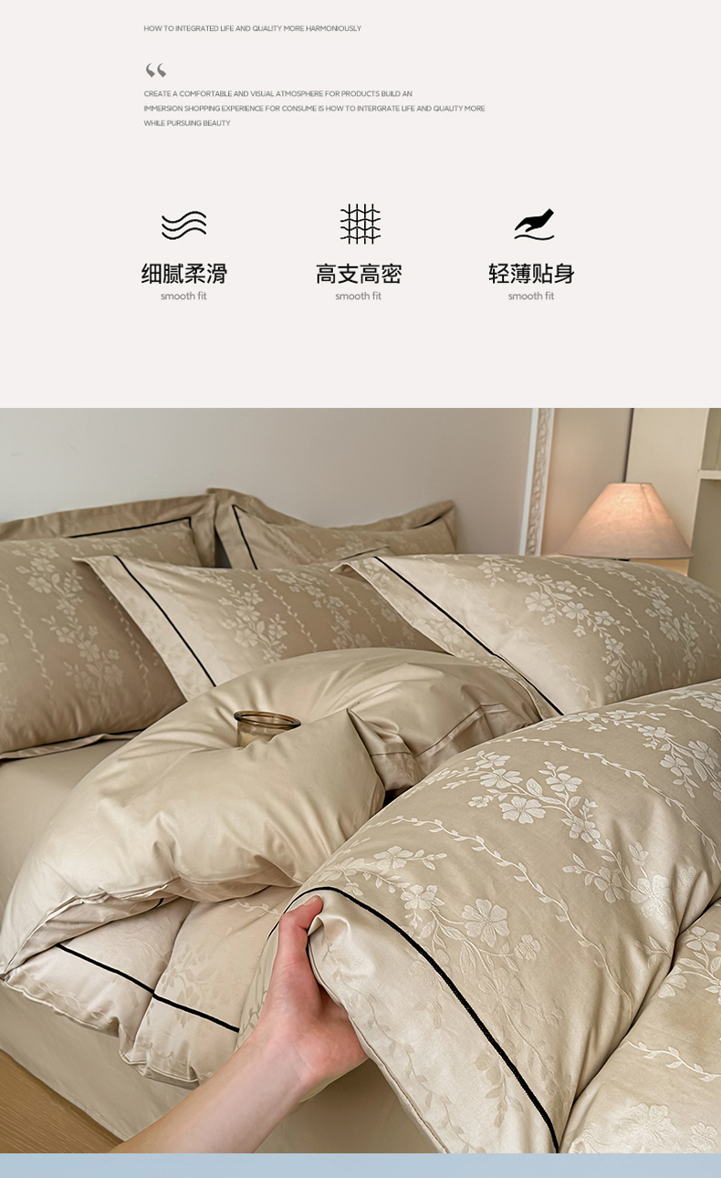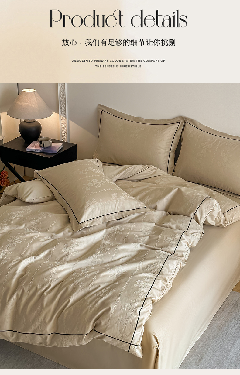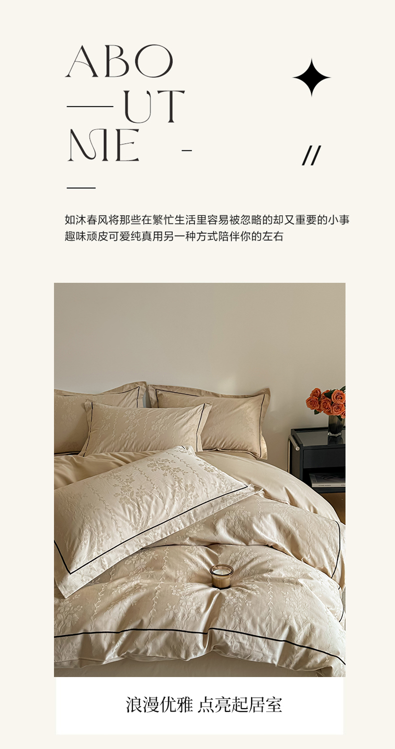 商品名称:首尔家纺 2026新款浮雕提花色织全棉四件套 花蔓-米咖