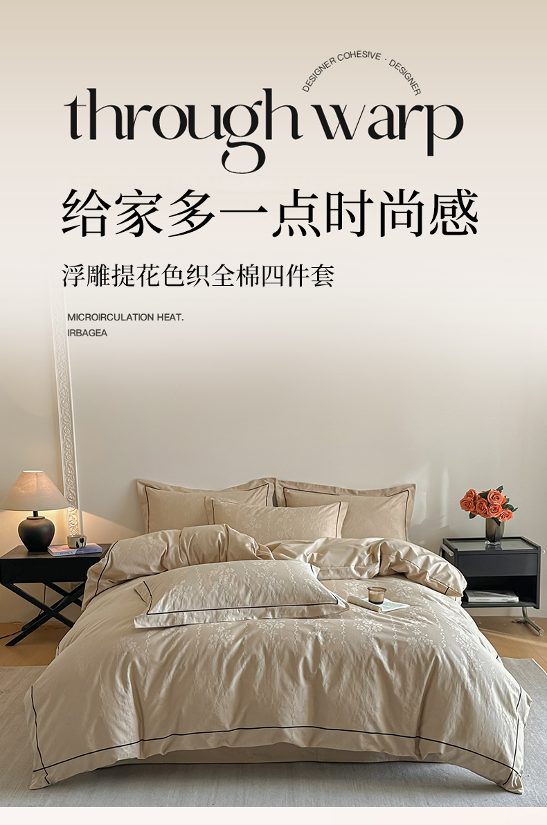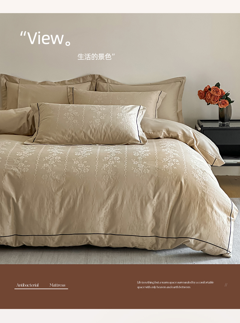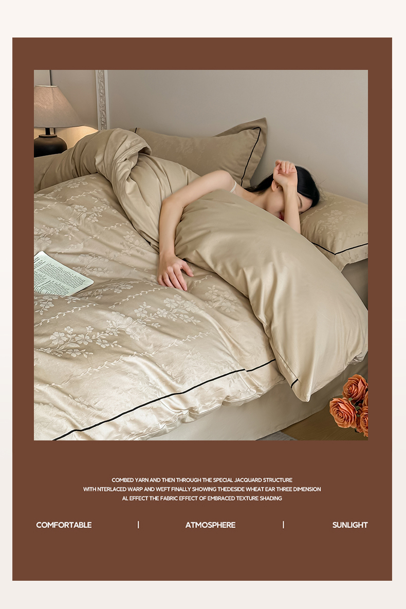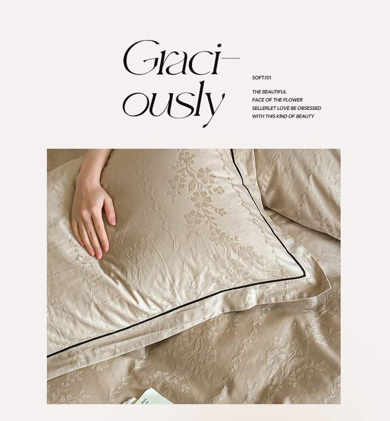 首尔家纺 2026新款浮雕提花色织全棉四件套 花蔓-米咖