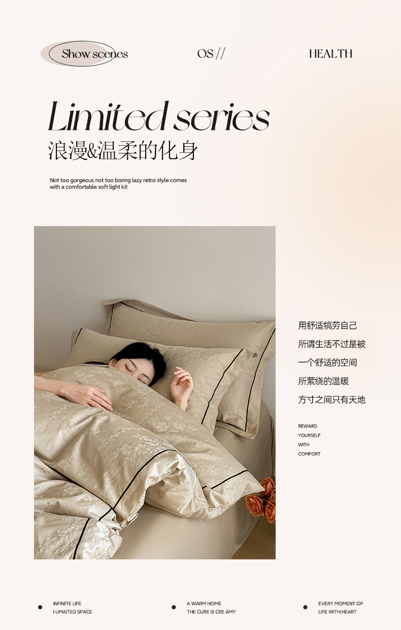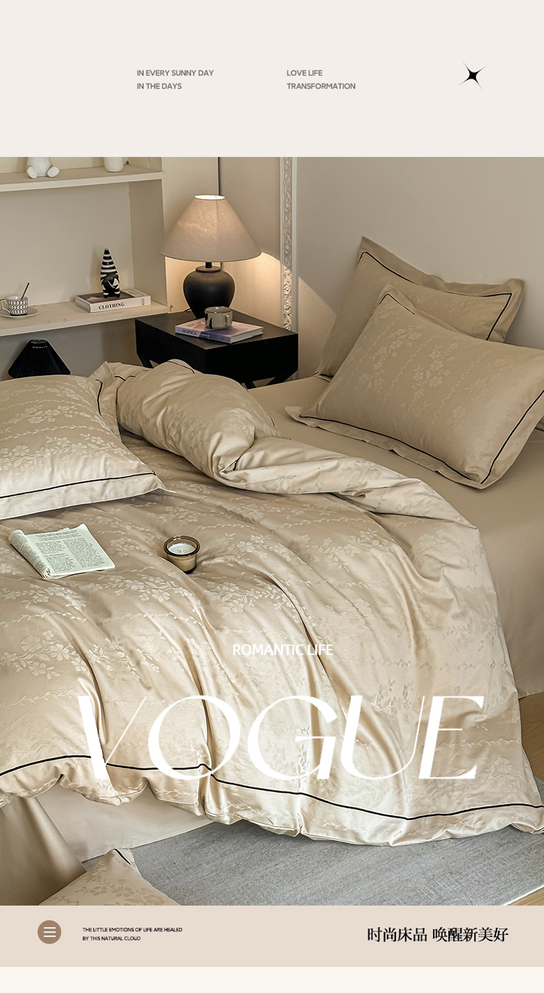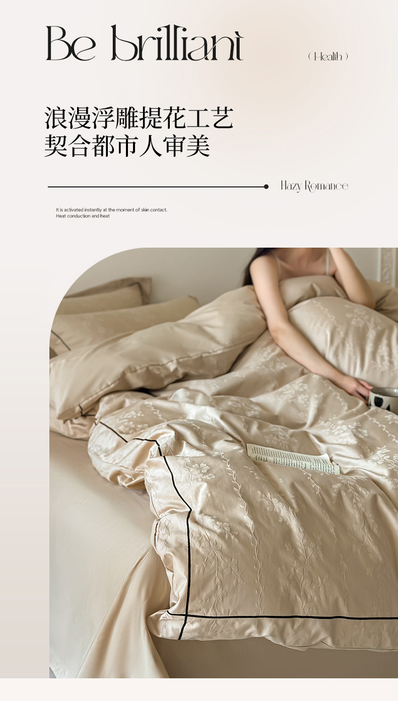 首尔家纺 2026新款浮雕提花色织全棉四件套 花蔓-米咖