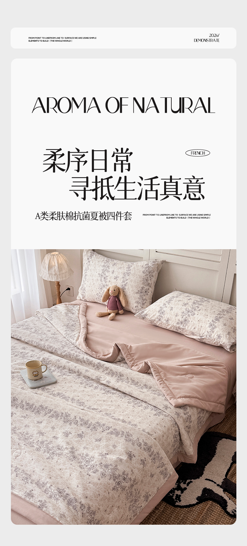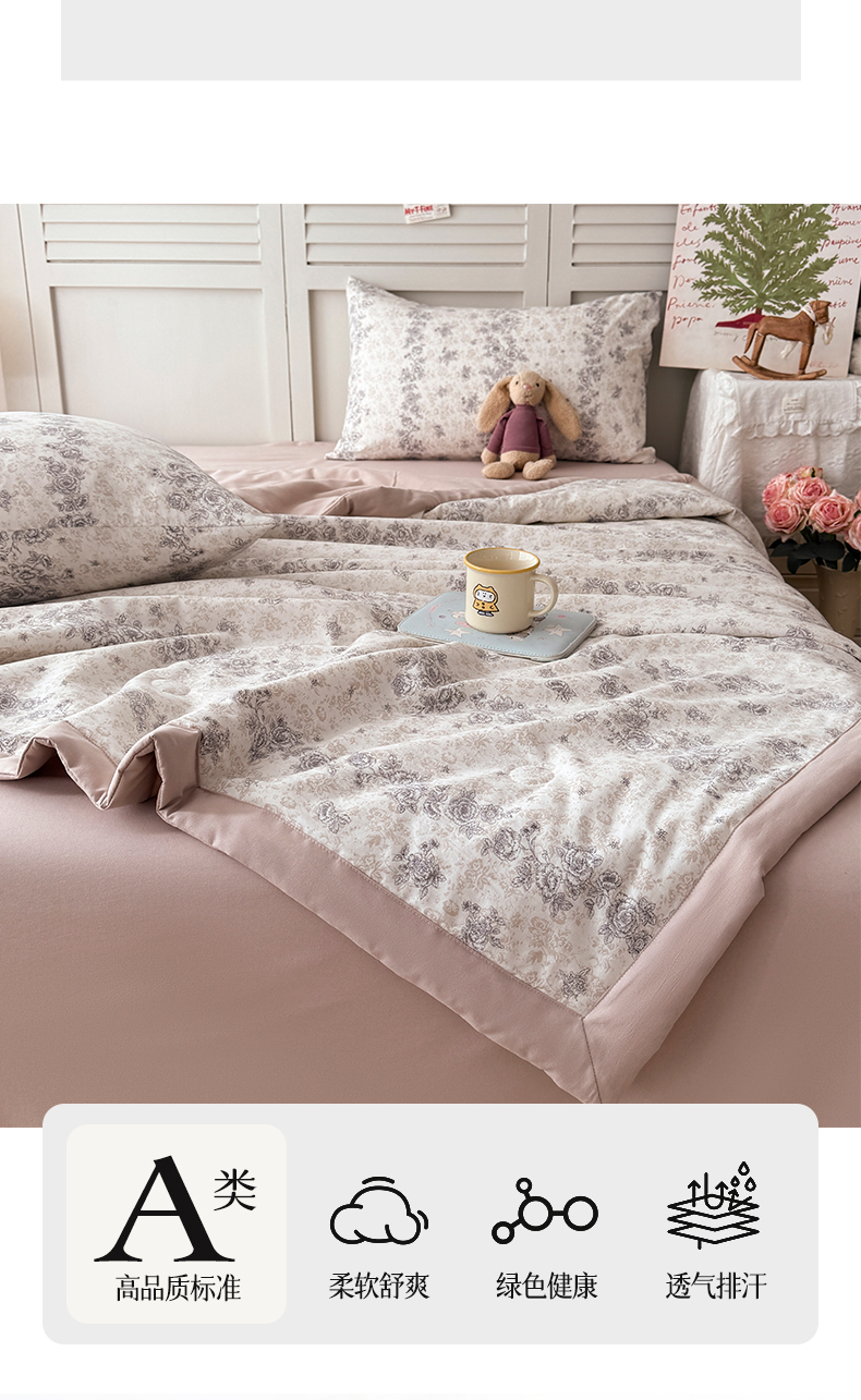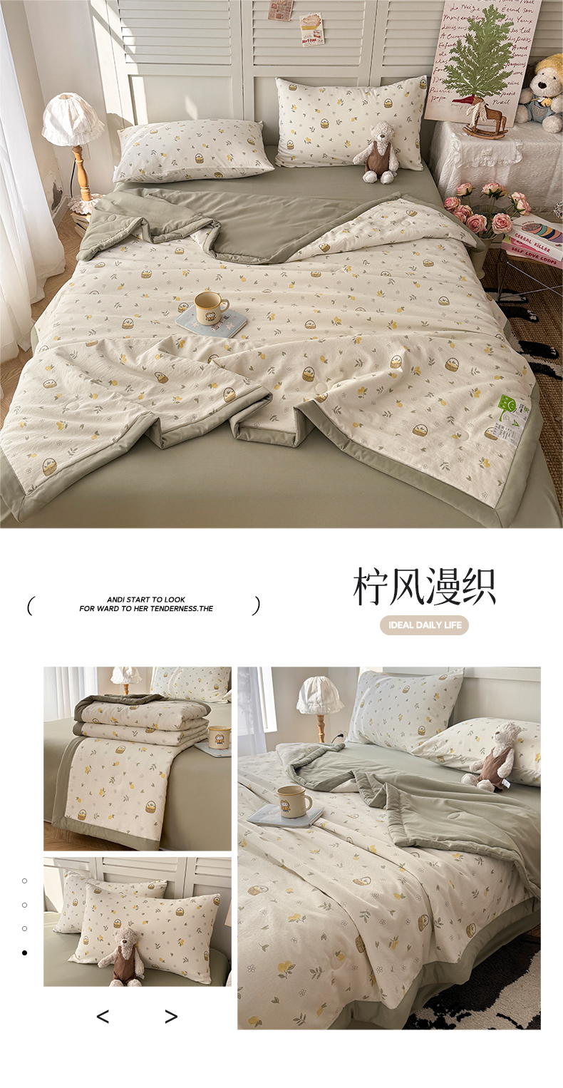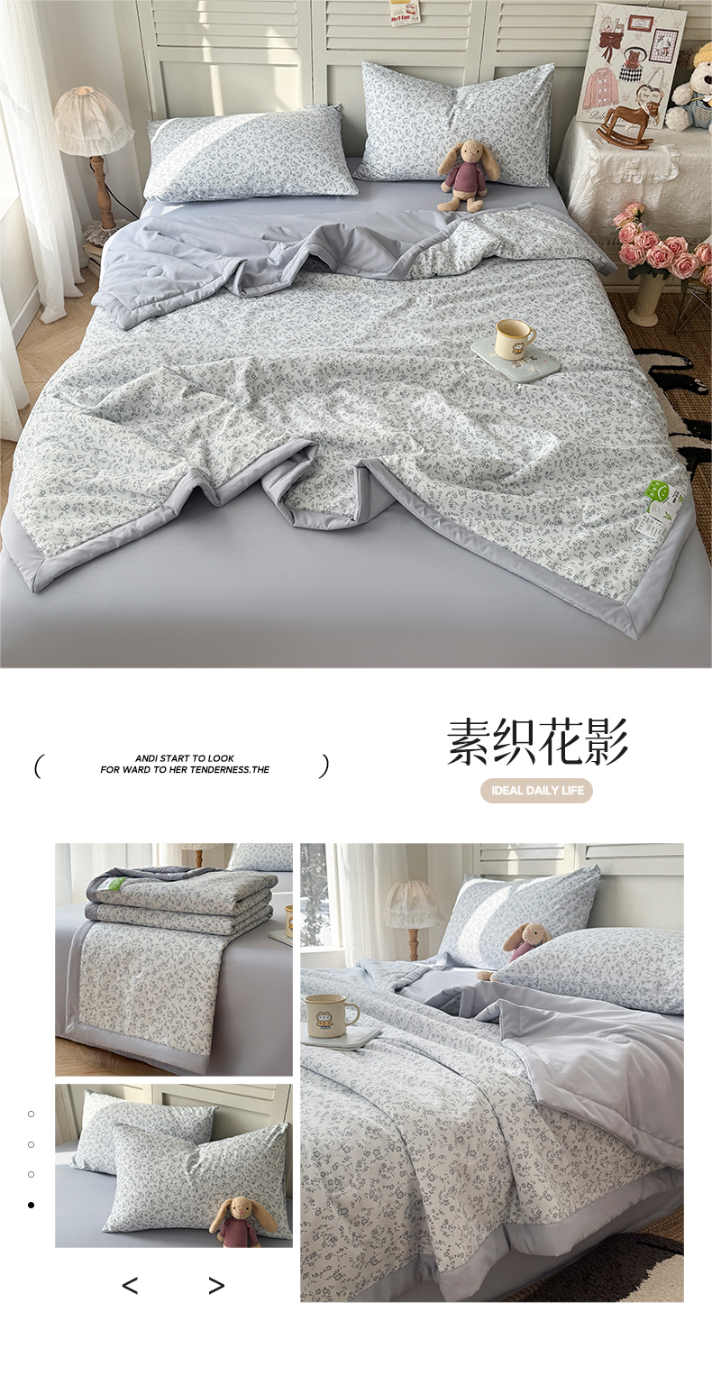 当前位置: 91家纺网 > 商品网购 > 床品套件 > 四件套 > 夏被四件套 > 盛凡家纺 2026新款小清新抗菌夏被夏凉被空调被被子被芯夏被四件套 晴窗格影