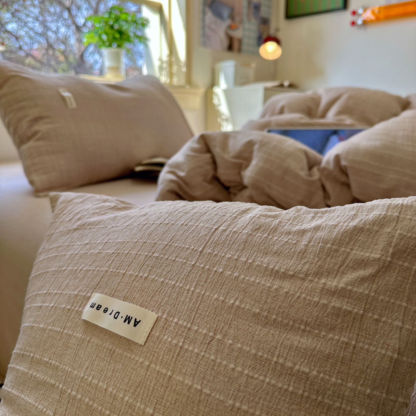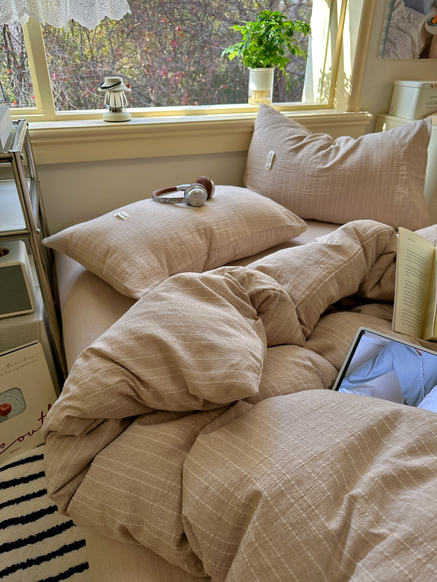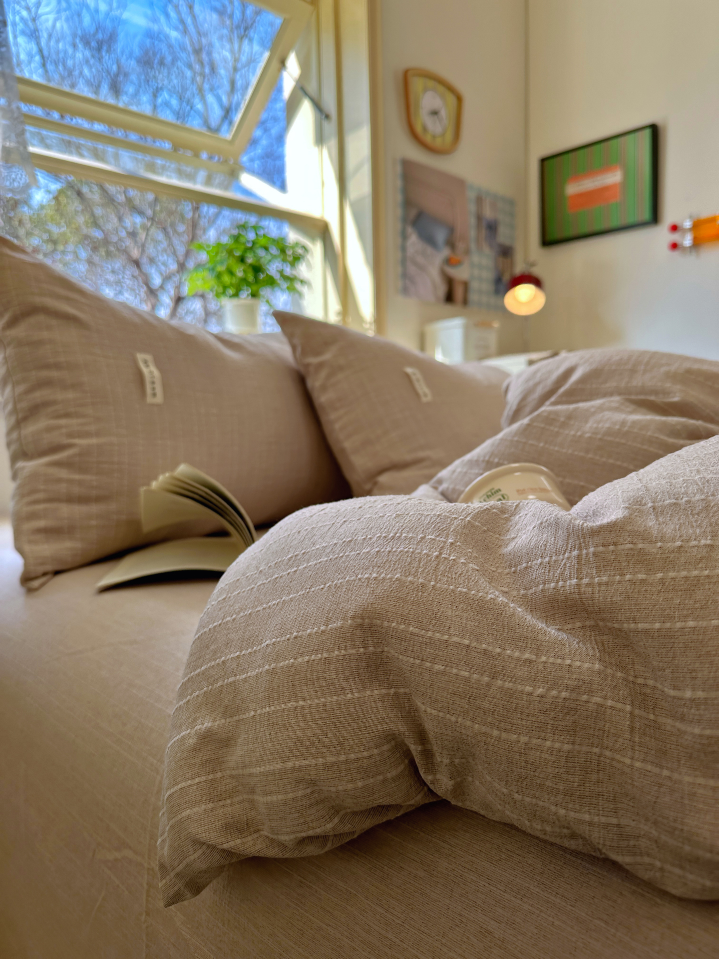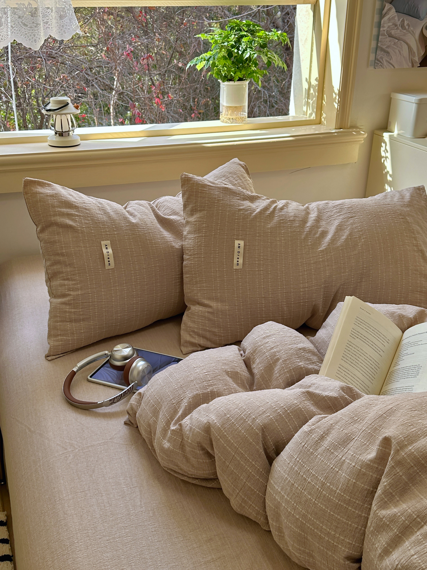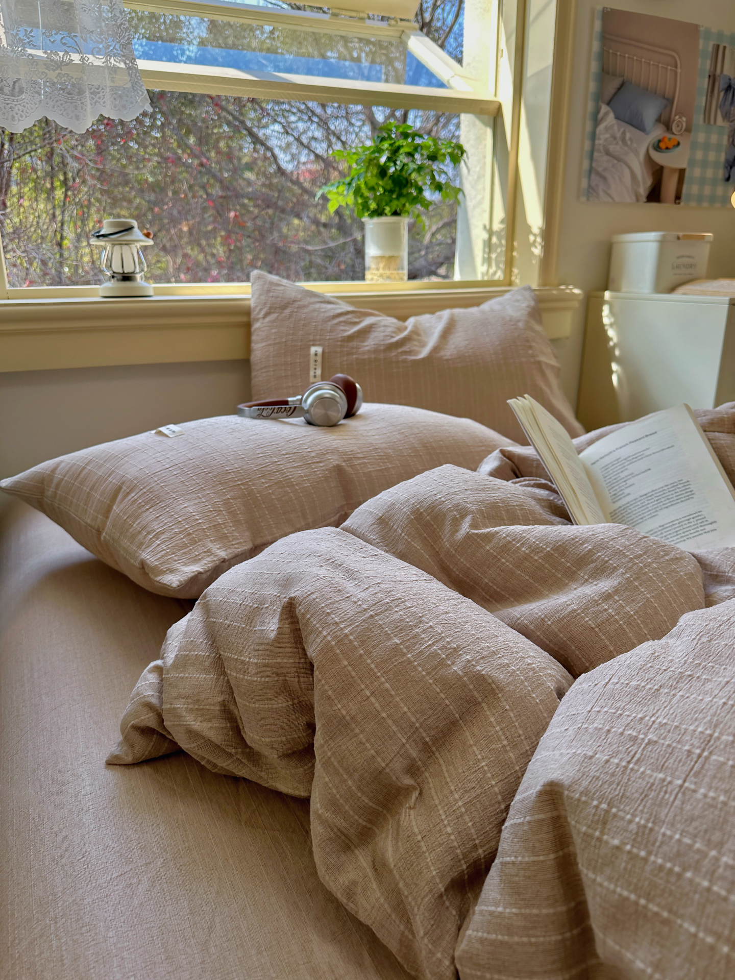 当前位置: 91家纺网 > 商品网购 > 床品套件 > 四件套 > 化纤普通四件套 > 优兰朵家纺 2026新款简约素色亚麻风纯色无印四件套 咖色-素然