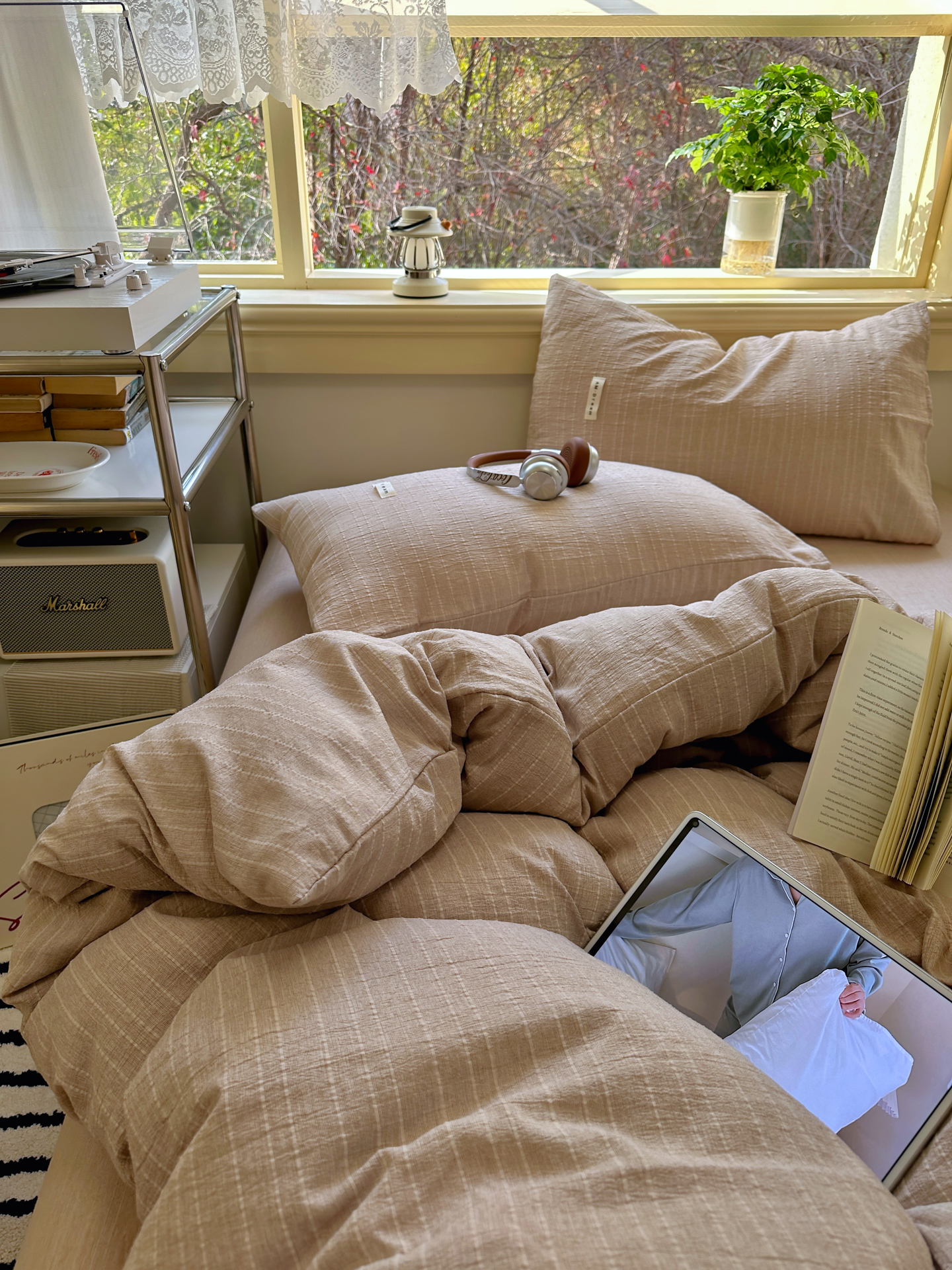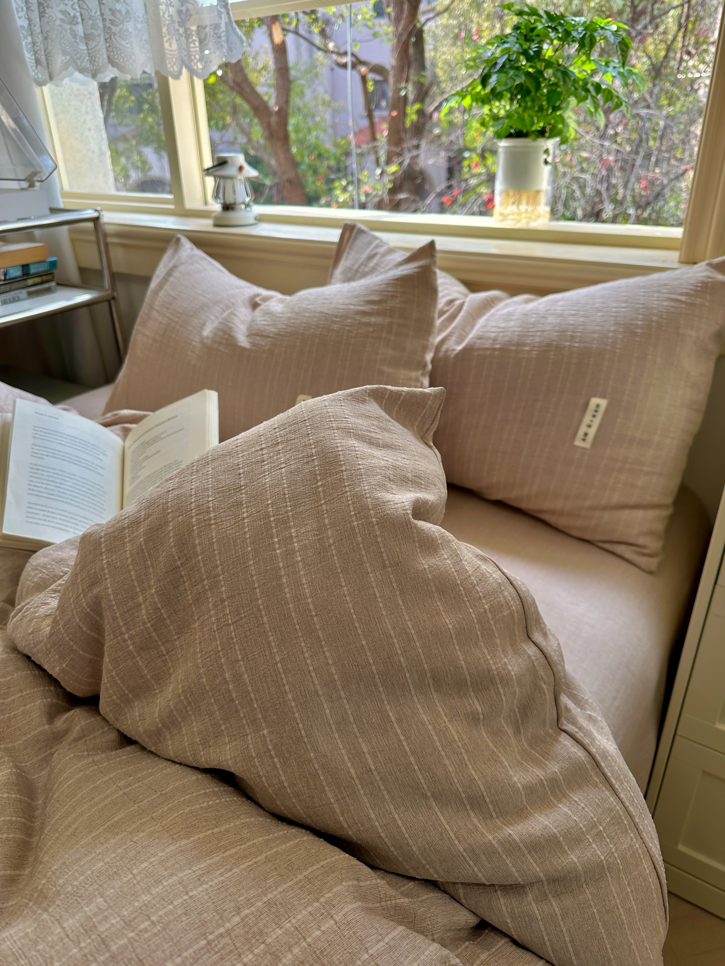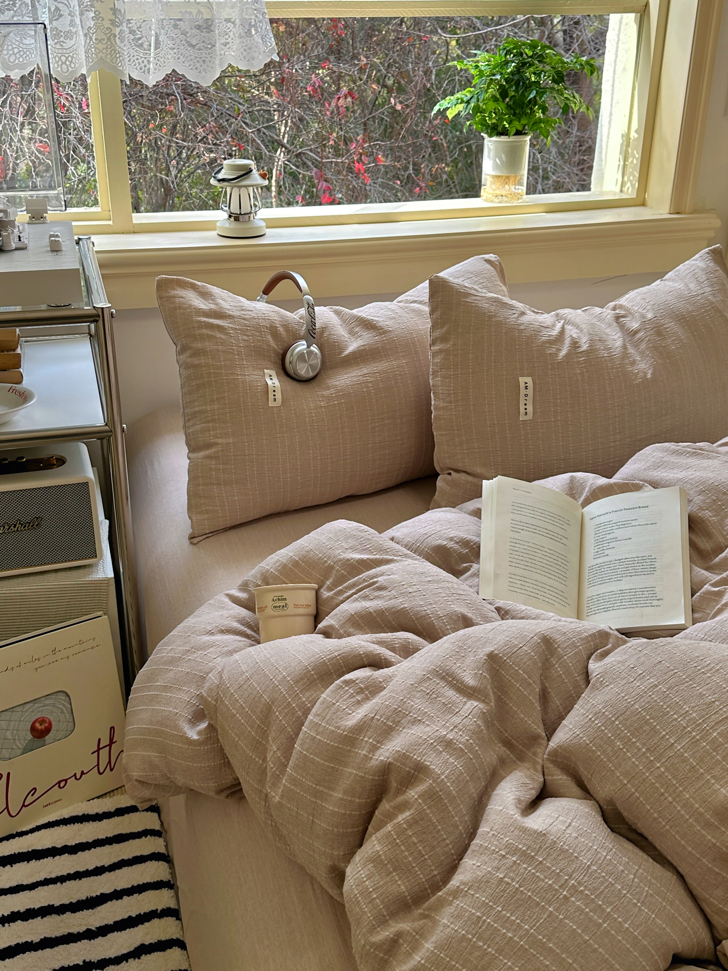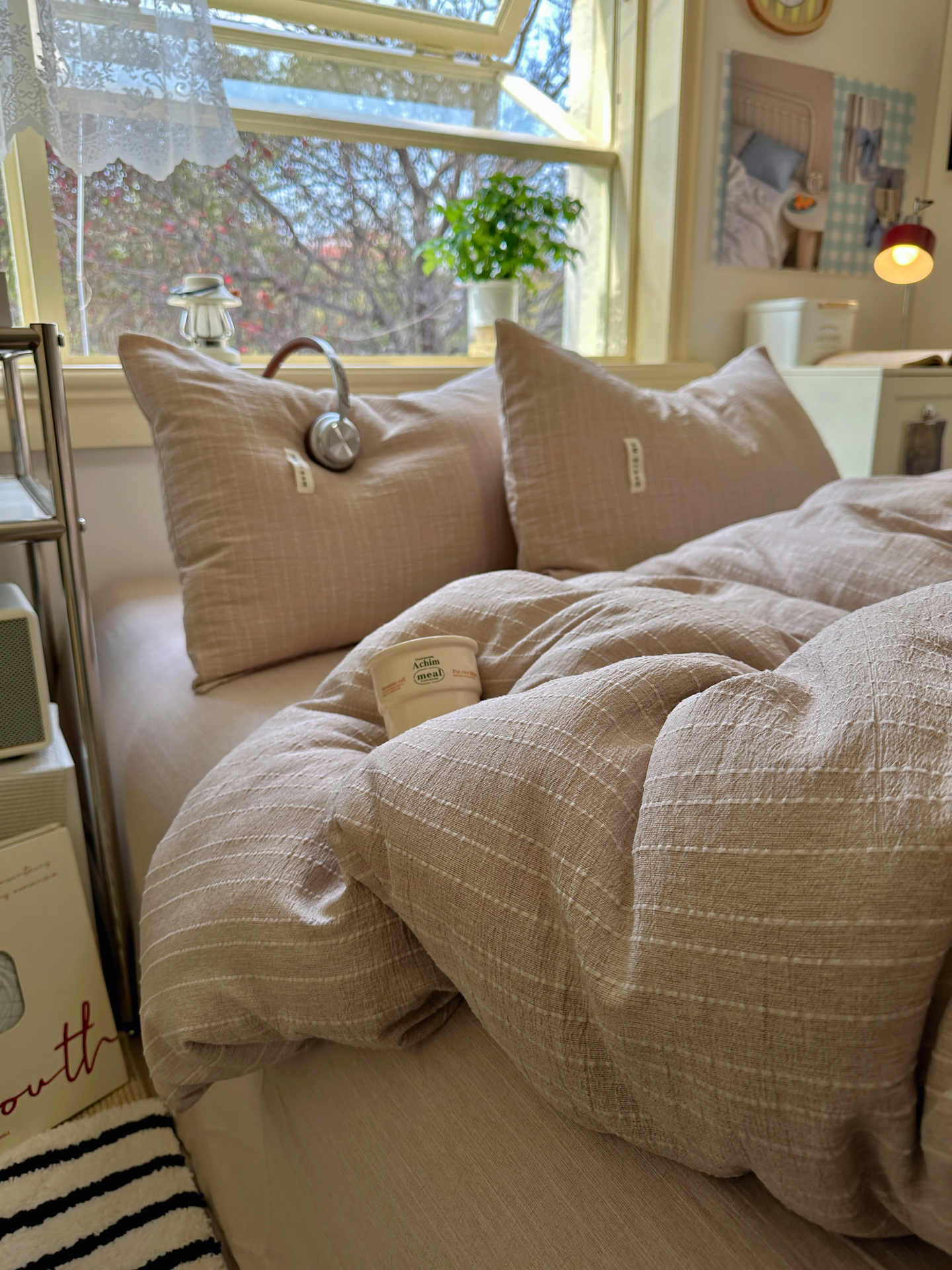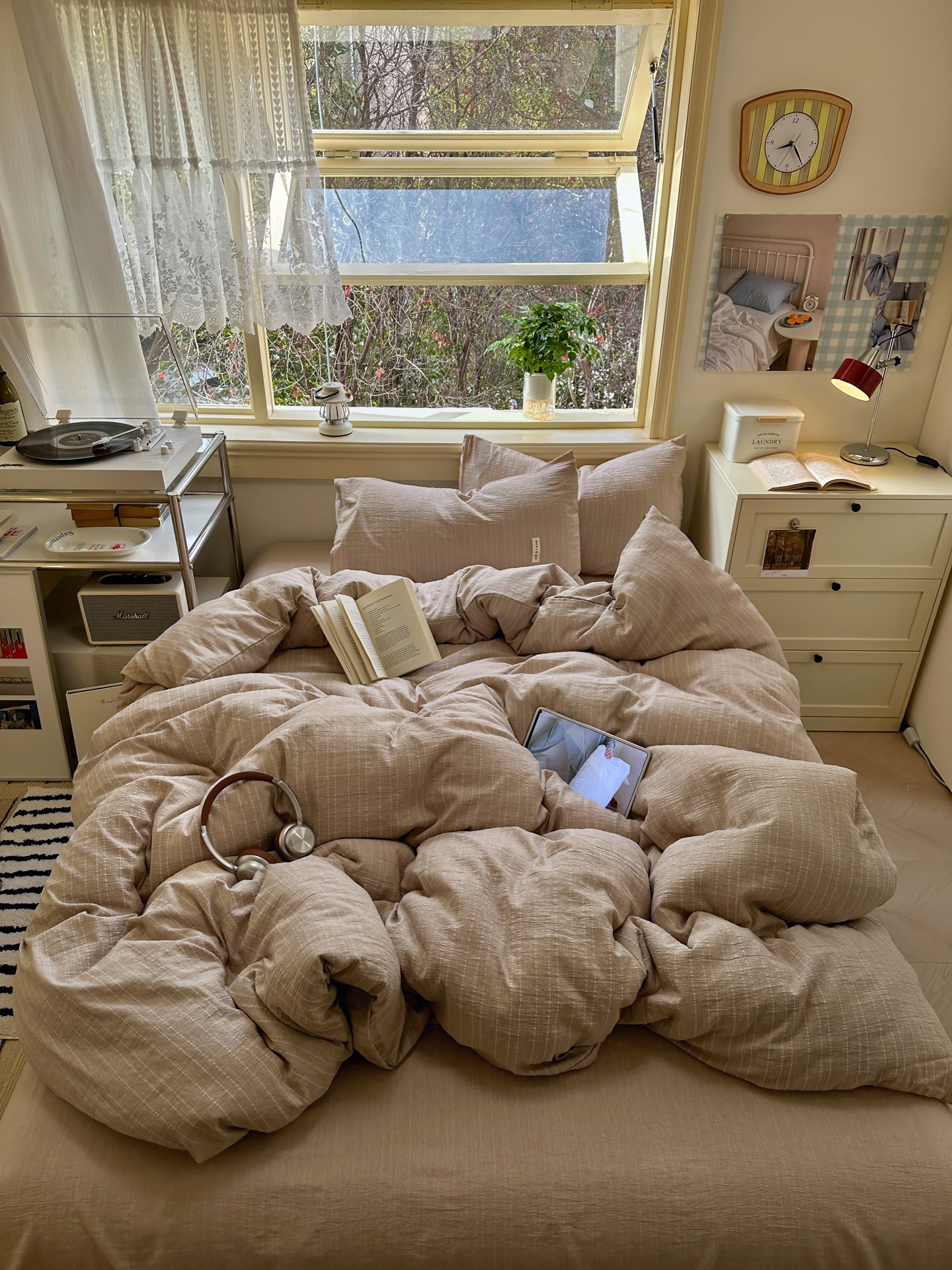 当前位置: 91家纺网 > 商品网购 > 床品套件 > 四件套 > 化纤普通四件套 > 优兰朵家纺 2026新款简约素色亚麻风纯色无印四件套 咖色-素然