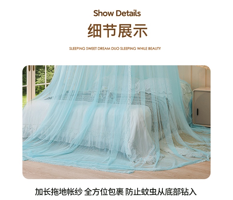 商品名称:梦尔佳蚊帐 2026新款蕾丝刺绣花好月圆圆顶蚊帐 水蓝
