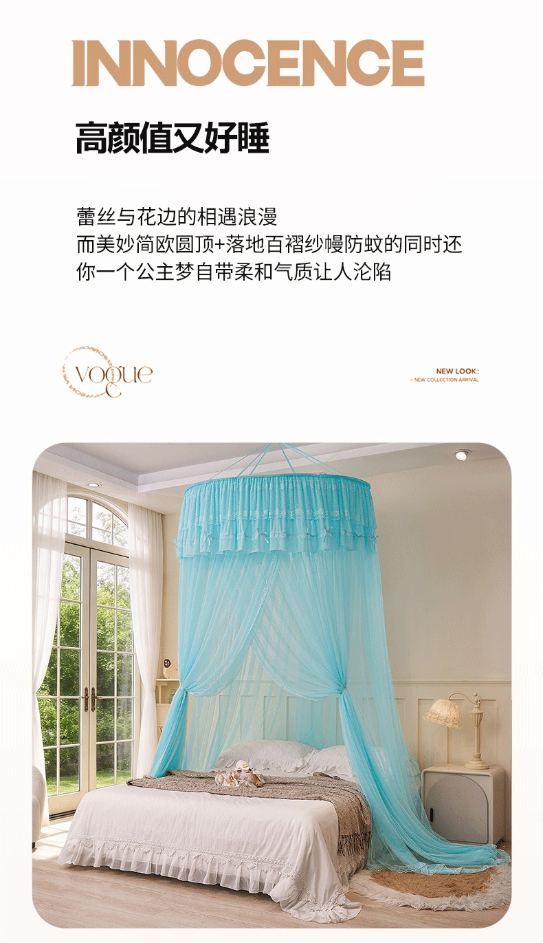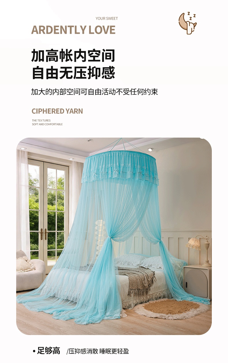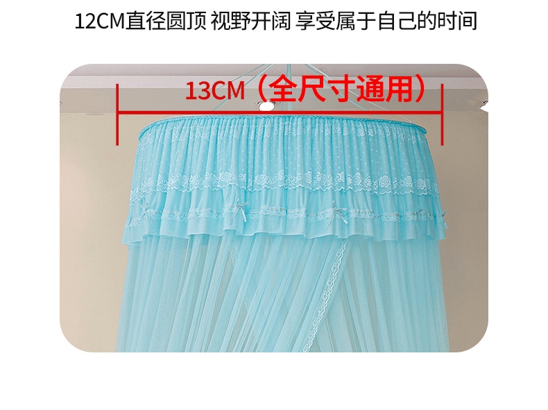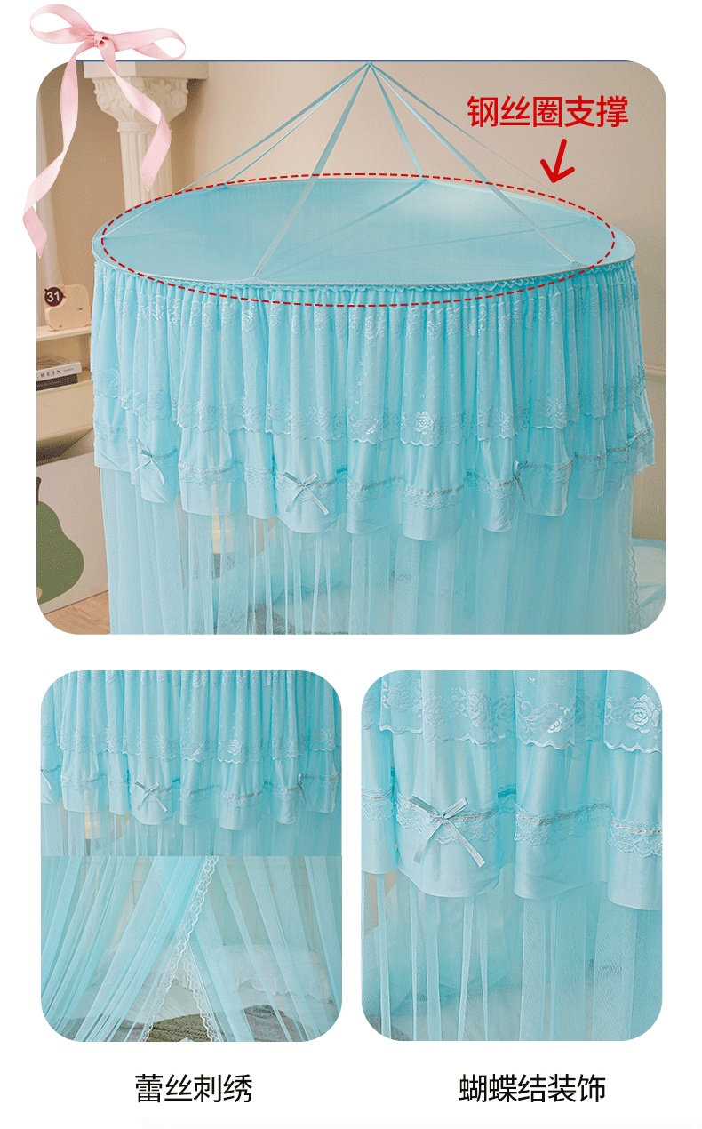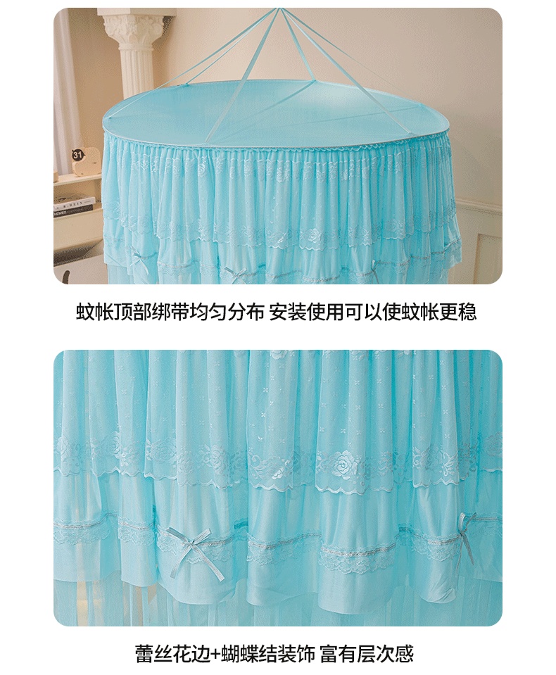 梦尔佳蚊帐 2026新款蕾丝刺绣花好月圆圆顶蚊帐 水蓝