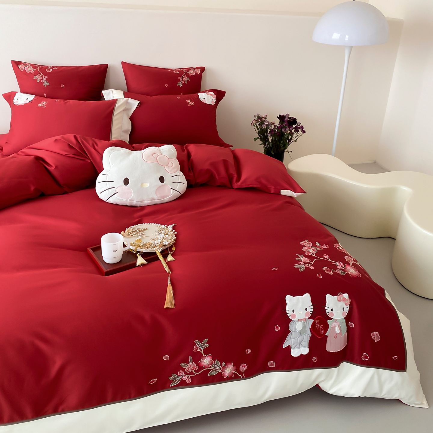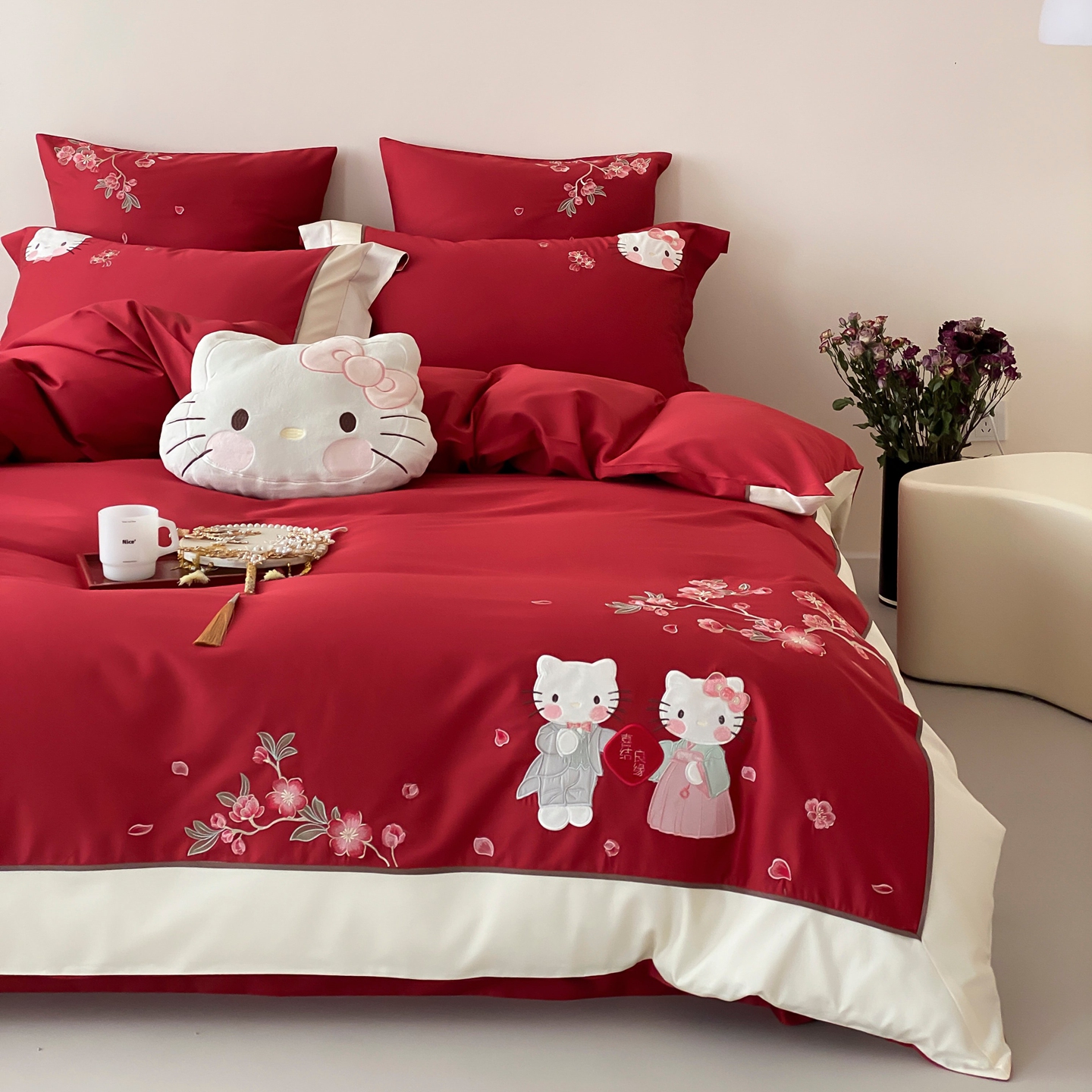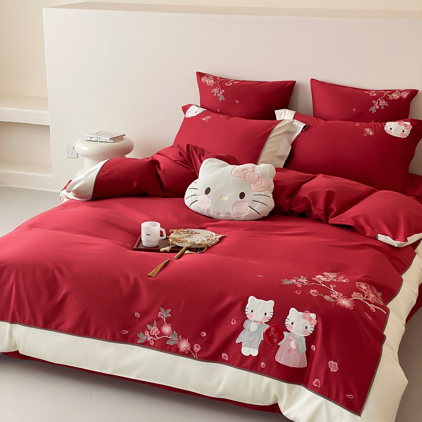 商品名称:佳汐蓝家纺 2026春夏新款长绒棉纯棉刺绣四件套-蜜搭子 蜜搭子-红色